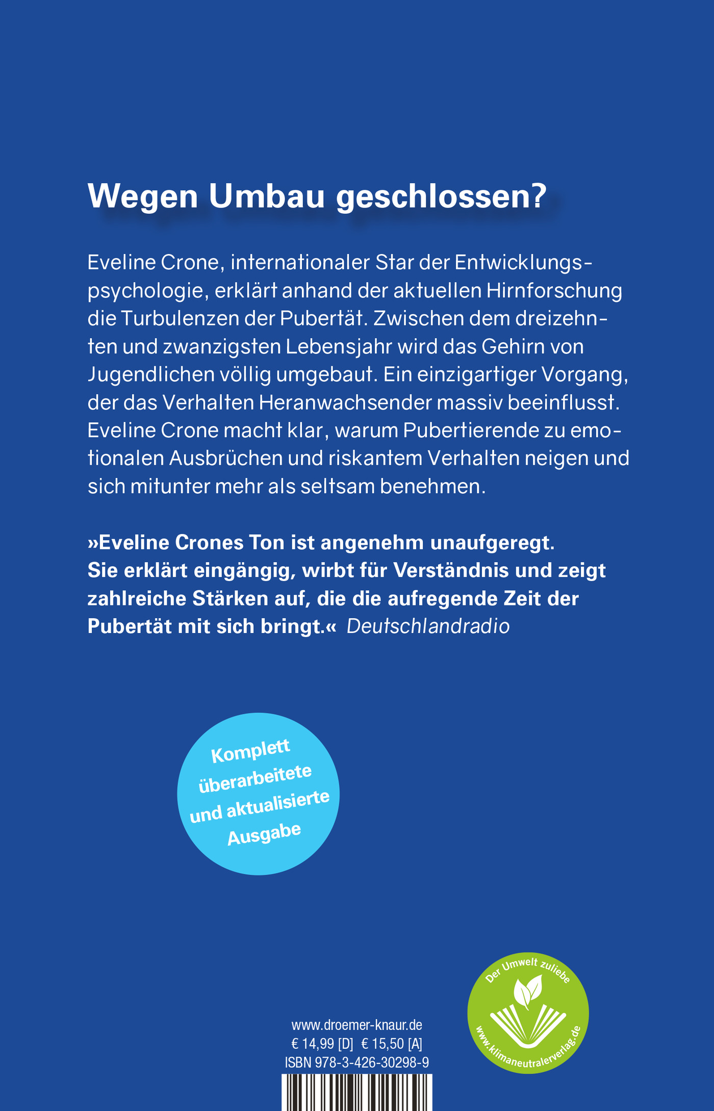Früher wurde alles auf die Hormone geschoben, doch seit einigen Jahren steht fest: Während der Adoleszenz wird das menschliche Gehirn noch einmal völlig umgebaut - was das Verhalten der Heranwachsenden über Jahre beeinflusst. In ihrem Buch beschreibt die renommierte Neurowissenschaftlerin Eveline Crone auf ebenso zugängliche wie höchst informative Weise die aktuellen Erkenntnisse der Hirnforschung - und erklärt, warum Pubertierende morgens nicht aus dem Bett kommen, plötzlich nicht mehr mit den Eltern reden wollen und sich in einem Sturm der Gefühle mitunter recht seltsam verhalten.