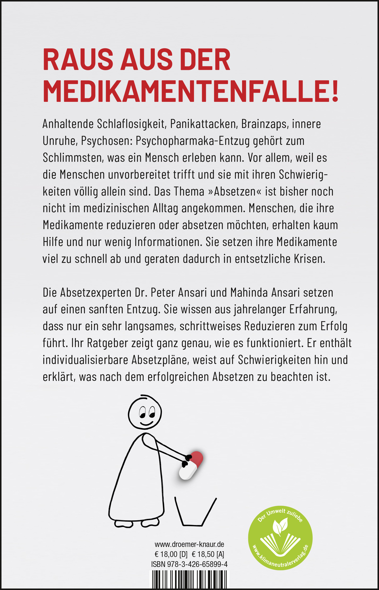 Dr. Peter Ansari und Mahinda Ansari begleiten seit Jahren Menschen auf dem Weg in die Medikamentenfreiheit. In ihrem neuen Gesundheitsratgeber beschreiben sie auf einfache und verständliche Weise erprobte Wege, mit denen sich Betroffene langsam und sanft aus der Abhängigkeit von Medikamenten befreien können. Sie bieten individualisierte Step-by-Step-Anleitungen, in das Ergebnis von 10 Jahren Forschungsarbeit mit Antidepressiva sind.