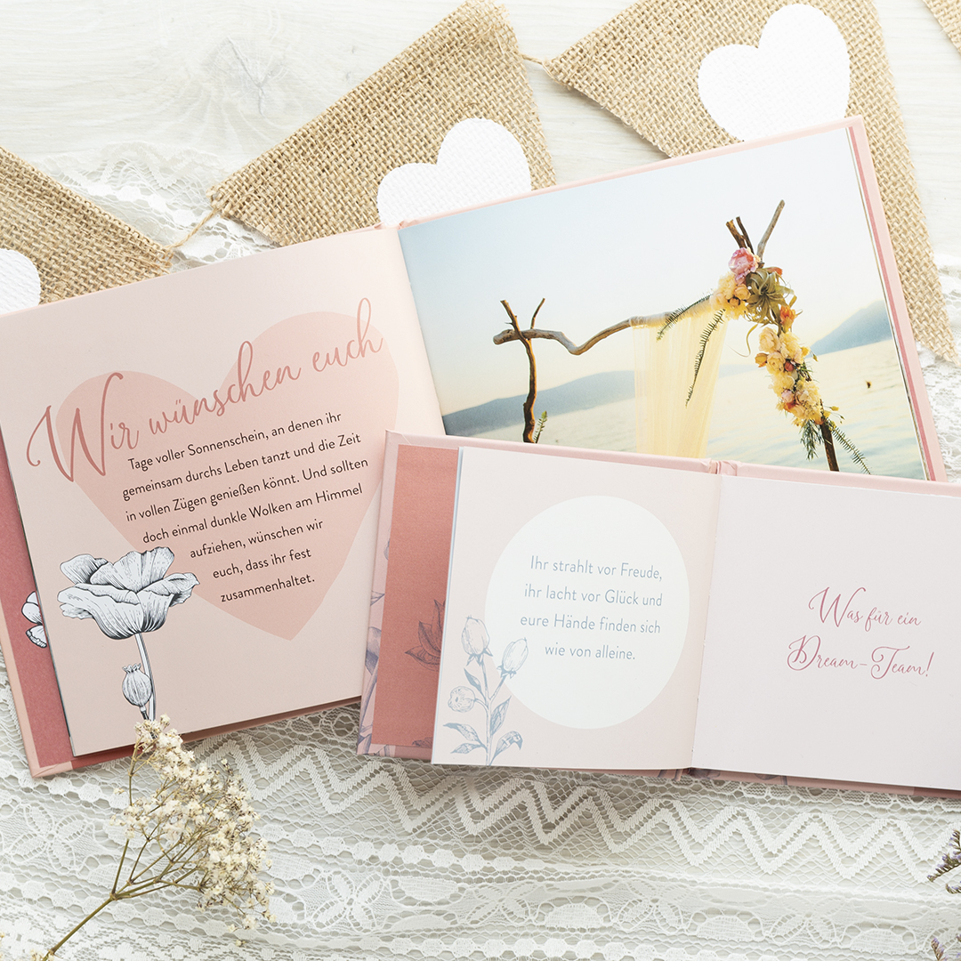 - Geschenkbuch Hochzeit mit 48 Seiten (Maße: 17,7 x 16,6 cm)