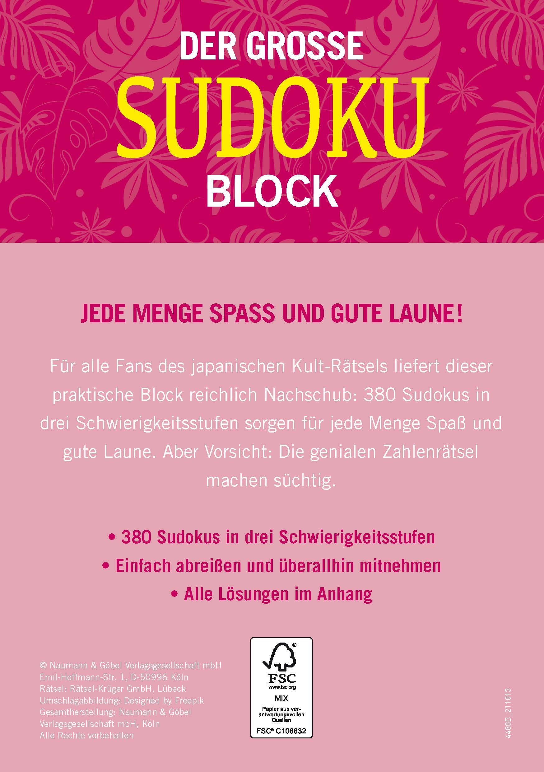 Genial einfach und doch verflixt schwierig - Sudoku ist ein Knobelspaß der Sonderklasse. Hier kommt reichlich Nachschub für alle Sudoku-Fans: 380 knifflige Herausforderungen lauern in unserem neuen Großen Sudoku-Block 6 auf Sie. Mit den drei Schwierigkeitsstufen in aufsteigender Reihenfolge können Sie Ihre Sudoku-Skills testen und nach und nach verbessern. Dabei lässt sich die tägliche Rätsel-Portion aus dem praktischen Block ganz einfach herausreißen und überallhin mitnehmen. So können Sie Ihrer Rätsel-Leidenschaft immer und überall nachgehen. Und mit Kombinationsgabe, Konzentrationsfähigkeit und Ausdauer werden Sie im Handumdrehen zum wahren Sudoku-Meister. Aber Vorsicht: Die genialen Zahlenrätsel machen süchtig.