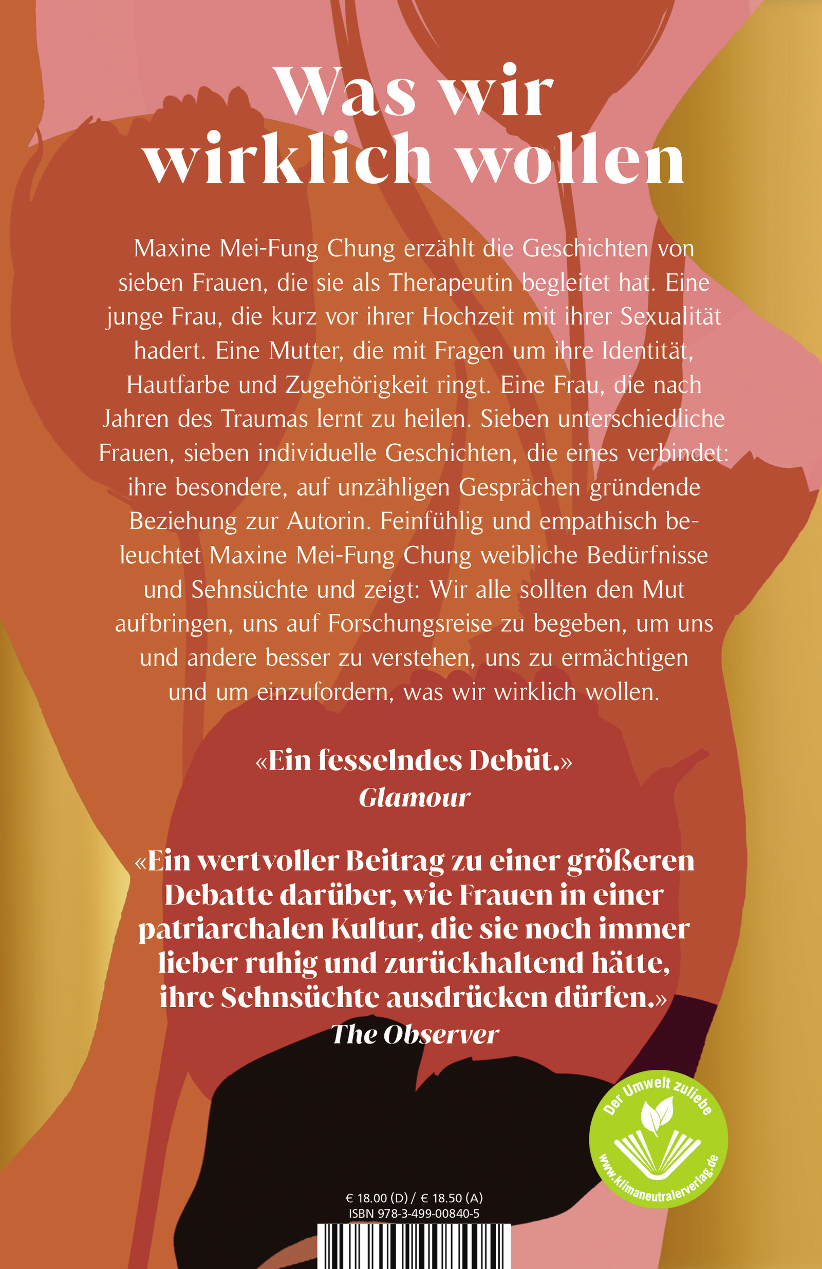 Terri steht kurz vor der Hochzeit mit ihrem Verlobten, doch sie flüchtet sich immer wieder in One-Night-Stands mit Frauen. Warum? Tia erlebte schon als Kind, als ihr Vater ihre Mutter betrog, dass weiße Frauen scheinbar liebenswerter sind als schwarze. Als Erwachsene versucht sie, sich neu zu erfinden - doch zu welchem Preis? Agatha, zweimal geschieden, verliebt sich mit 67 Jahren zum ersten Mal in ihrem Leben. Wozu benötigt diese vermeintlich glückliche Frau so spät in ihrem Leben noch eine Therapeutin? Maxine Mei-Fung Chung erzählt auf brillante Weise die Geschichten von sieben Frauen, die sie in den letzten fünfzehn Jahren begleitet hat. Sieben unterschiedliche Frauen, sieben individuelle Geschichten, die eins verbindet: die besondere, intime Beziehung zur Autorin. Feinfühlig und empathisch beleuchtet Mei-Fung Chung die Bedürfnisse und Sehnsüchte ihrer Protganistinnen und zeigt in der Zusammenschau auf, was Frausein heute bedeutet und was Frauen wollen.