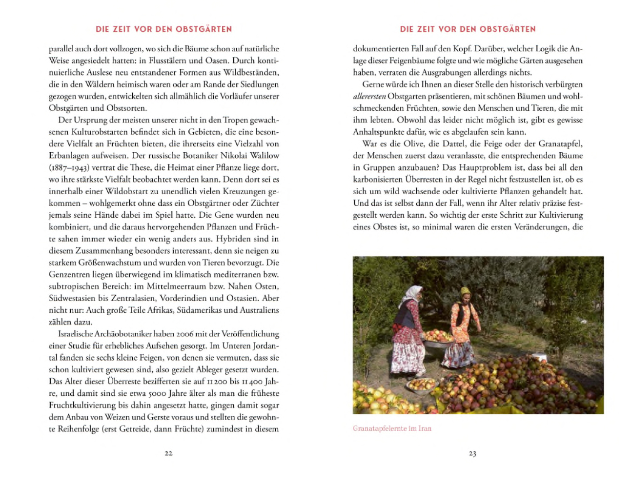 »[...] eine reich illustrierte Zeitreise, die vom Obstanbau bei Griechen und Römern über die Gärten der Könige im französischen Barock und die Anfänge der Massenproduktion bis zur Wiederentdeckung alter Obstsorten in der Gegenwart führt.«
