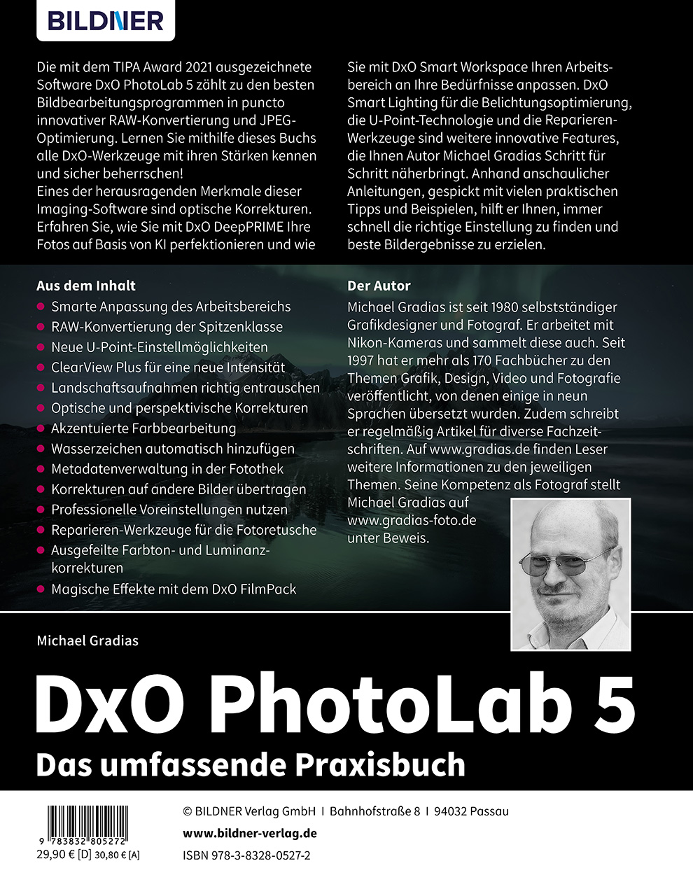Eines der herausragenden Merkmale dieser Imaging-Software sind optische Korrekturen. Erfahren Sie, wie Sie mit DxO DeepPRIME Ihre Fotos auf Basis von KI perfektionieren und wie Sie mit DxO Smart Workspace Ihren Arbeitsbereich an Ihre Bedürfnisse anpassen. DxO Smart Lighting für die Belichtungsoptimierung, die U-Point-Technologie und die Reparieren-Werkzeuge sind weitere innovative Features, die Ihnen Autor Michael Gradias Schritt für Schritt näherbringt. Anhand anschaulicher Anleitungen, gespickt mit vielen praktischen Tipps und Beispielen, hilft er Ihnen, immer schnell die richtige Einstellung zu finden und beste Bildergebnisse zu erzielen.