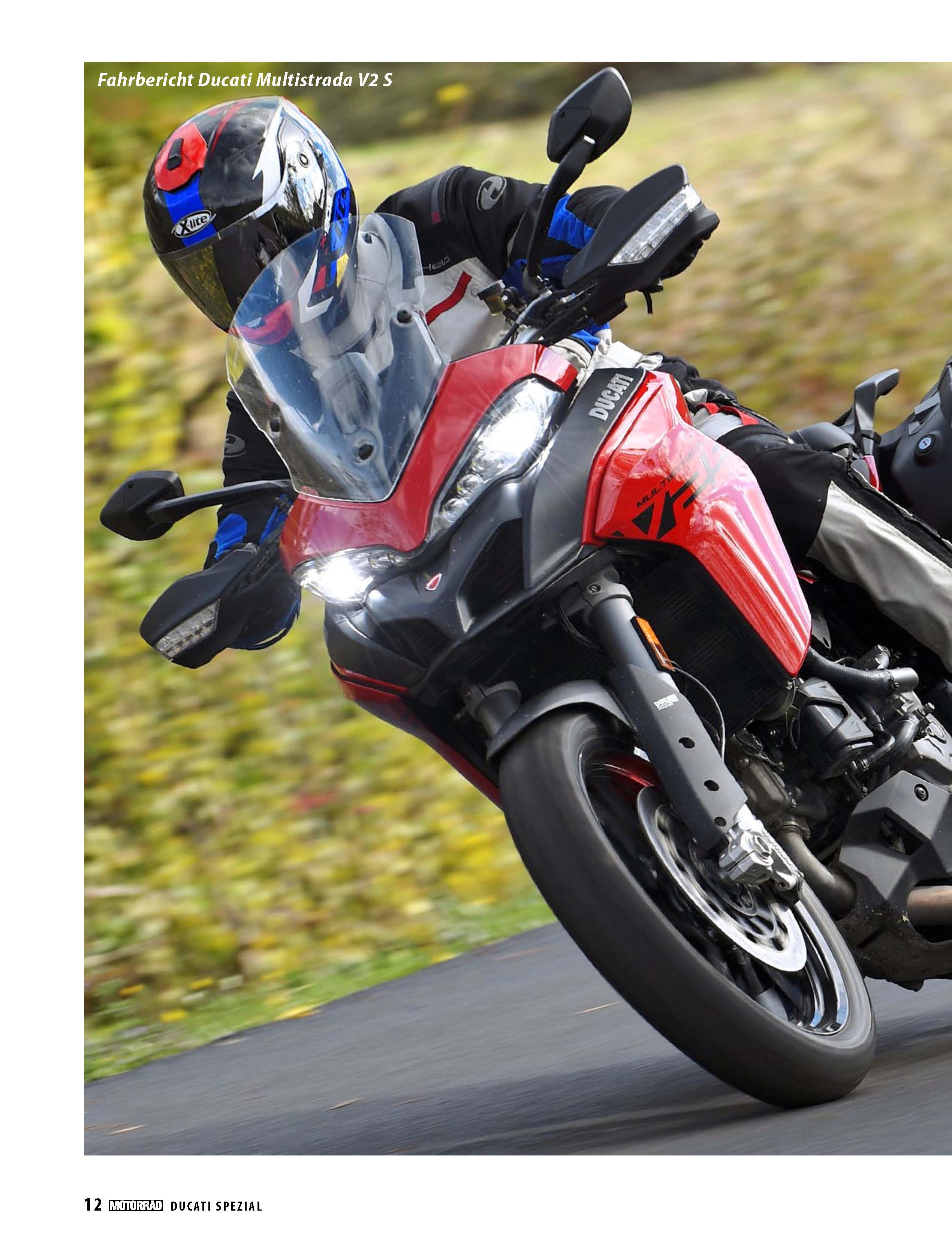 Die faszinierende Welt der "Roten aus Bologna": Tests, Rennsport, Fanszene. Fahrberichte liefern spannende Eindrücke von den wichtigsten Neuheiten des Modelljahres 2022 von Multistrada V2 über Streetfighter V2 bis zur Panigale V4 S. Ein fesselnder Test berichtet außerdem, wie die Multistrada V4 S erstmals das legendäre Alpen Masters gewann. Dazu exklusive Einblicke in das Entstehen der neuen Scrambler Desert X, inklusive Vorstellung der neuesten Scrambler-Modelle. Ergänzt von einem Überblick über die komplette Scrambler-Familie. Besonderer Leckerbissen: ein fesselnder Rückblick über 50 Jahre Grand Prix-Sport, abgerundet durch ein Interview zu den MotoE-Plänen von Ducati.