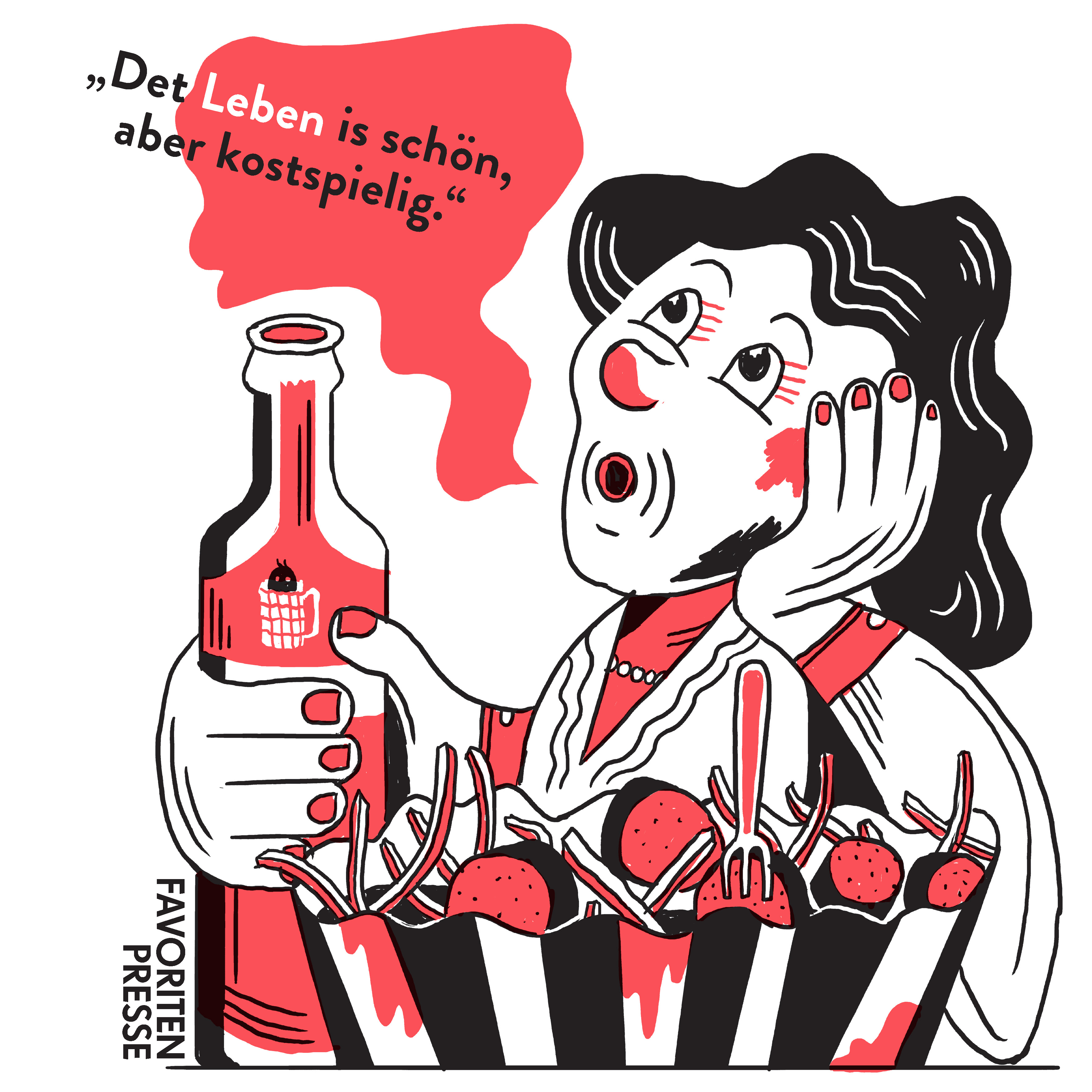 Künstlertasche. Det Leben ist schön, aber kostspielig. Berliner geflügelte Worte.