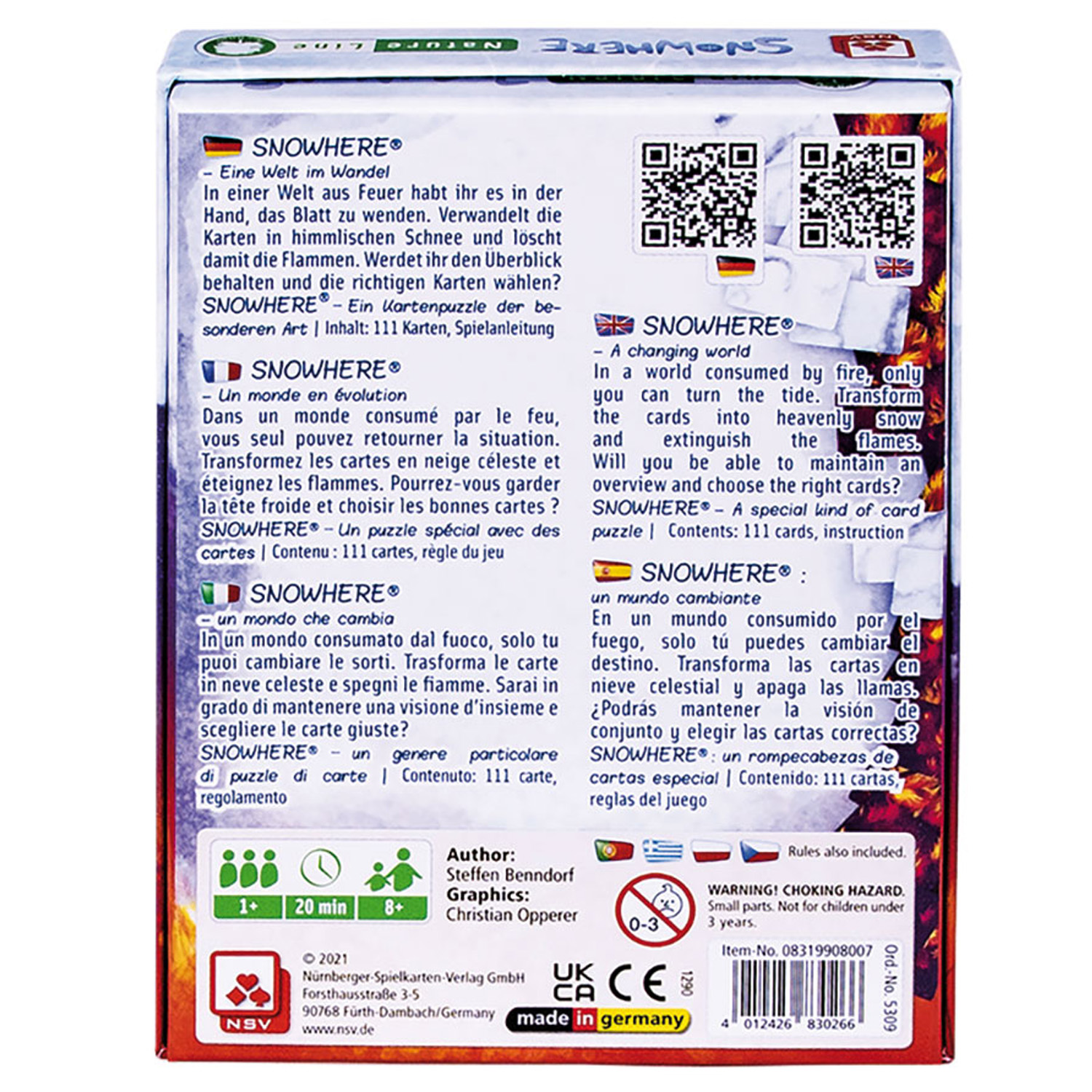 In einer Welt aus Feuer habt ihr es in der Hand, das Blatt zu wenden. Verwandelt die Karten in himmlischen Schnee und löscht damit die Flammen. Werdet ihr den Überblick behalten und die richtigen Karten wählen? Snowhere - Ein Kartenpuzzle der besonderen Art!