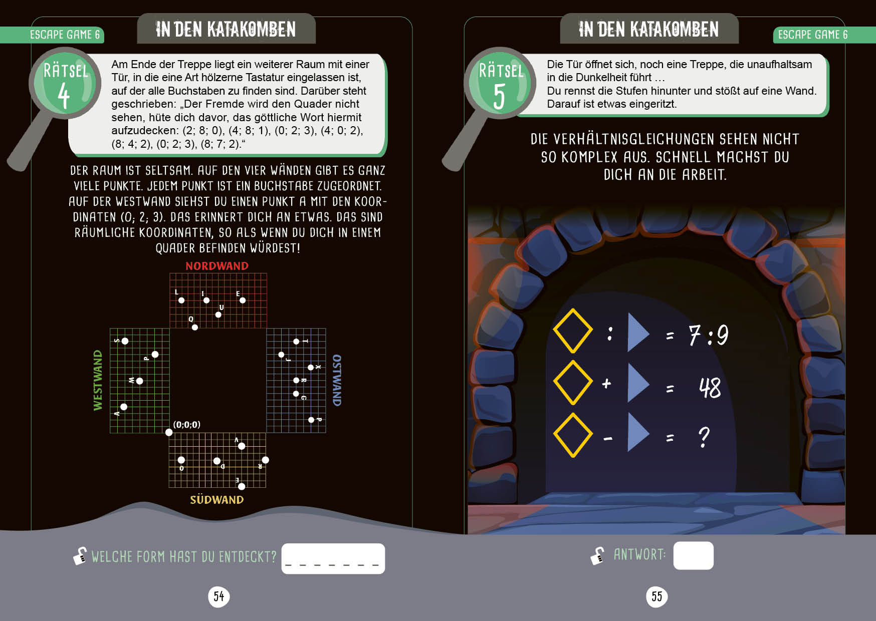 In diesen 9 fesselnden Escape Games in Buchform müssen zahlreiche geheime Nachrichten entschlüsselt, Indizien verfolgt und Codes geknackt werden. Dabei müssen die Detektive ein Gespür für Logik und eine schnelle Beobachtungsgabe entwickeln, um kryptische Nachrichten zu entschlüsseln und damit entfliehen zu können. Ganz nebenbei können spielerisch die Mathekenntnisse wiederholt und vertieft werden. Ein wahres Escape Adventure!