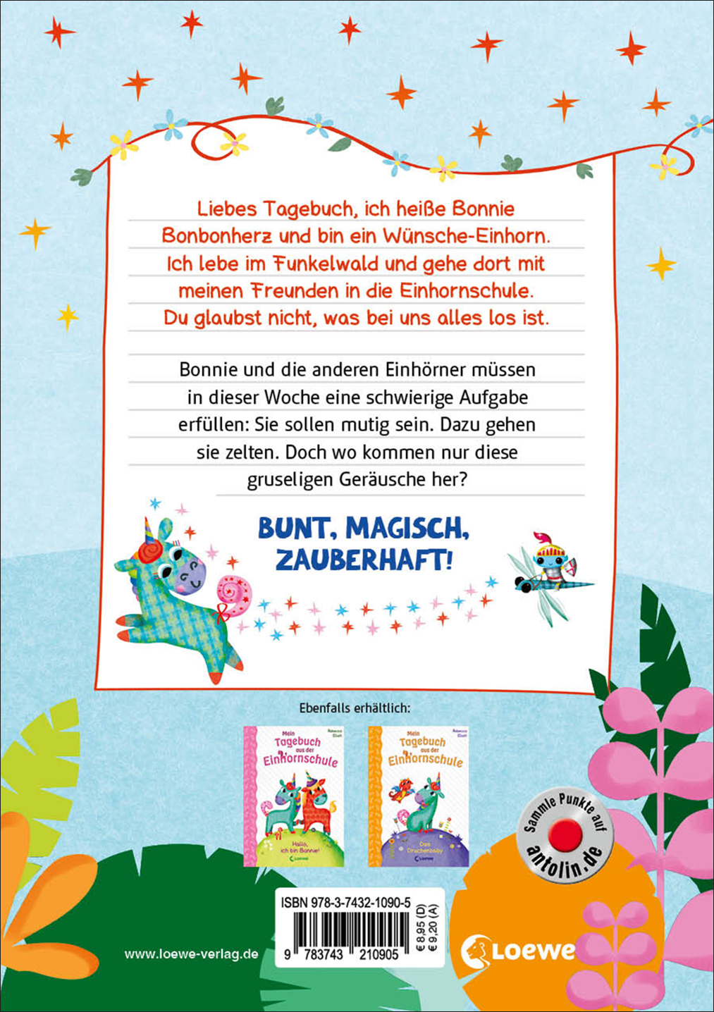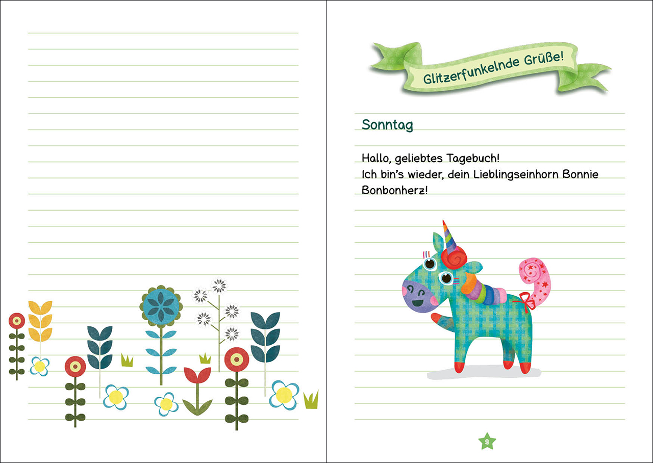 Liebes Tagebuch, ich heiße Bonnie Bonbonherz und bin ein Wünsche-Einhorn. Ich lebe im Funkelwald und gehe dort mit meinen Freunden in die Einhornschule. Du glaubst nicht, was bei uns alles los ist.