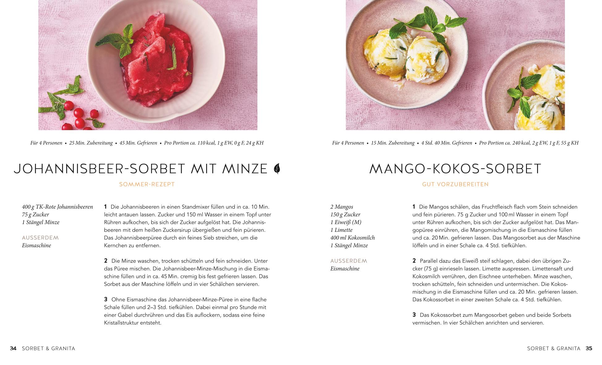 Leichte, fruchtig-frische Eisalternativen - mit oder ohne Eismaschine zubereitet mit Früchten, Kaffee, Likör oder Nüssen. Die Bandbreite von Sorbet und Granita ist riesengroß. Probieren Sie diese Kreationen: