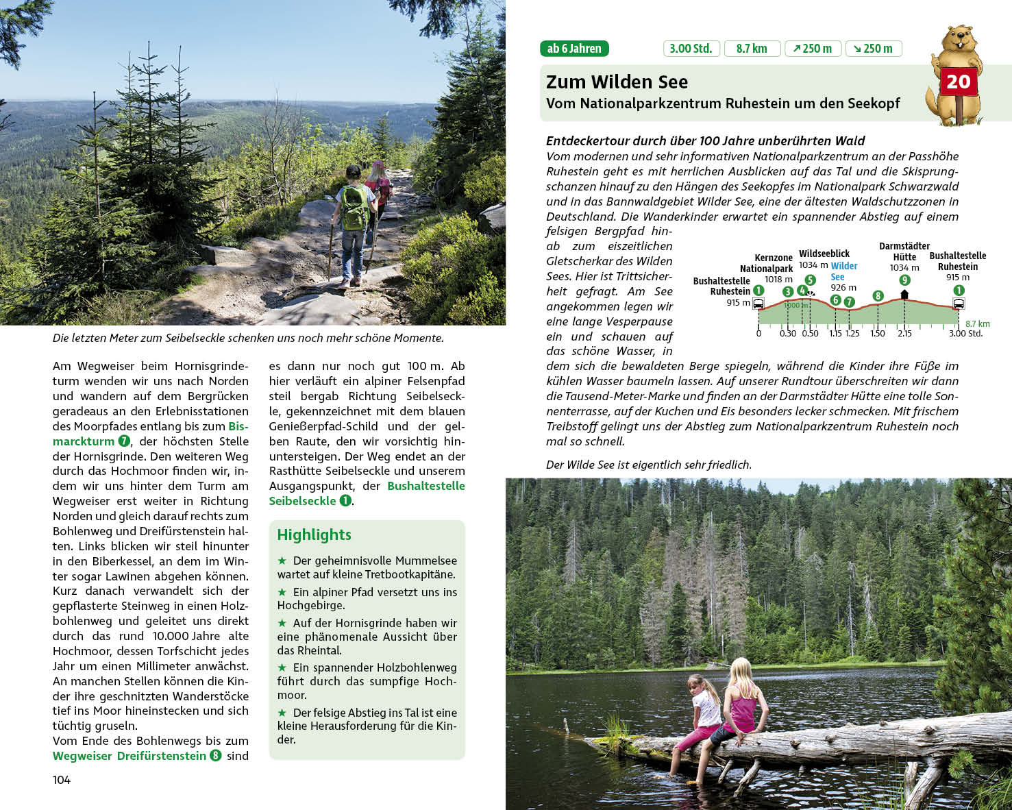 Auf schmalen Steigen kraxeln, geheimnisvolle Moorlandschaften erforschen und aufregende Erlebnispfade erkunden - der Schwarzwald bietet Abenteuer für die ganze Familie! Das Rother Wanderbuch »ErlebnisWandern mit Kindern - Schwarzwald Nord« stellt 40 spannende Touren und Ausflüge vor. Neben beliebten Zielen wie Hornisgrinde, Mummelsee oder Geroldsauer Wasserfall finden sich in diesem Buch auch unbekanntere Ausflüge wie der zum Alternativen Wolf- und Bärenpark in Schapbach oder auf dem Beckerweg auf den Hohen Ochsenkopf. Auf den Wanderungen treffen die kleinen und großen Wanderer auf urige Bergpfade, reißende Bäche, magische Moorlandschaften und abenteuerliche Erlebniswege. Außerdem stellt das Wanderbuch über 70 weitere Freizeit- und Schlechtwettertipps vor, die Lust auf die Erkundung des Schwarzwalds abseits der Wanderrouten machen. Da kommt garantiert keine Langweile auf! Alle Touren wurden von Kindern getestet. Für einfache Planung bietet das Buch zu jeder Wanderung eine Altersempfehlung, Schwierigkeitsgrad und Dauer. Die zuverlässige Wegbeschreibung wird von einem Kartenausschnitt mit eingezeichneter Route, Höhenprofil und Fotos ergänzt. GPS-Tracks stehen zum Download bereit. Und für die Kinder hat das kleine Murmeltier »Rothi« zu jeder Wanderung eine Geschichte, eine Sage oder ein Naturphänomen parat!