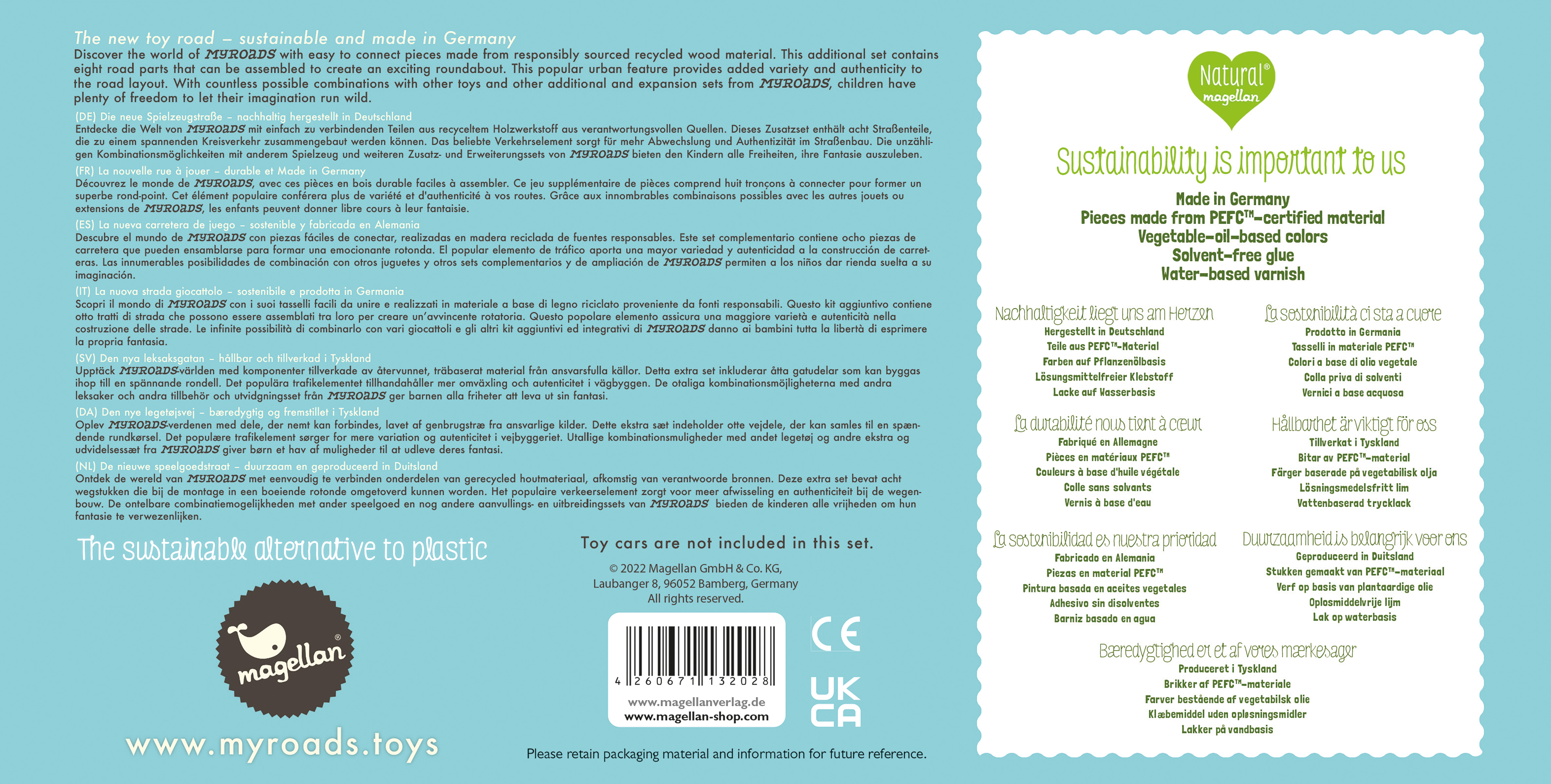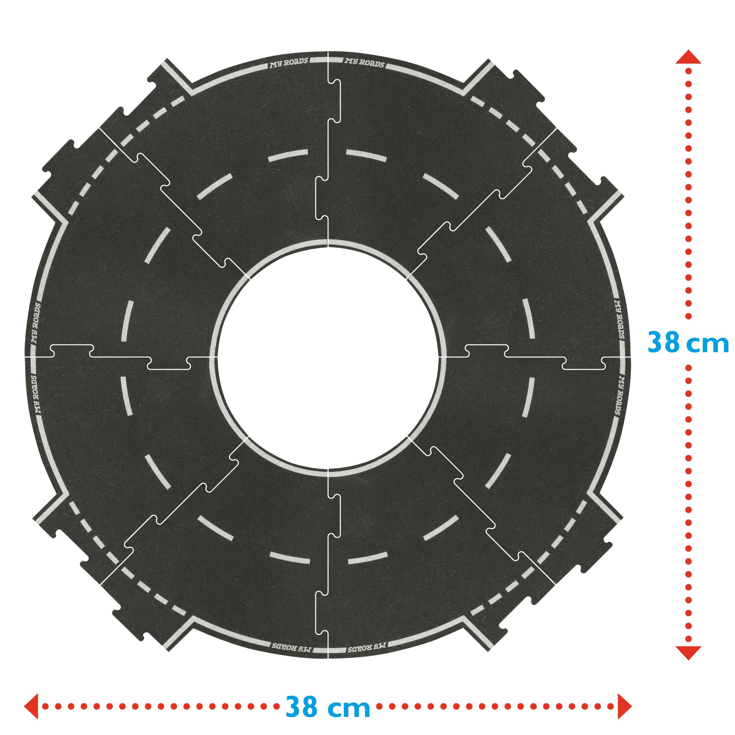 Das neue Zusatzset von „MyRoads" erweitert die umweltfreundliche Spielwelt um ein beliebtes und allbekanntes Straßenelement: den Kreisverkehr. Das 8-teilige Set beinhaltet wie „Long Straight" und „Big Curve" weitere Zusatzteile für mehr Spielspaß im Straßenbau. Kinder können rund um den Kreisverkehr endlos neue Strecken kreieren und diese mit anderem Spielzeug und Zusatz- und Erweiterungssets von „MyRoads" kombinieren.