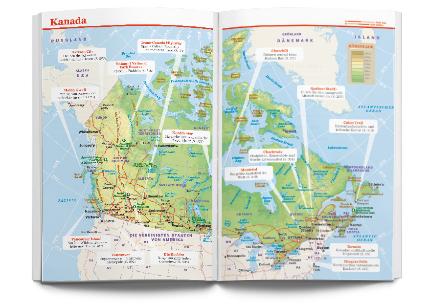 Farbkapitel mit 25 Top- Erlebnissen, farbiges Themen-Kapitel Kanadas