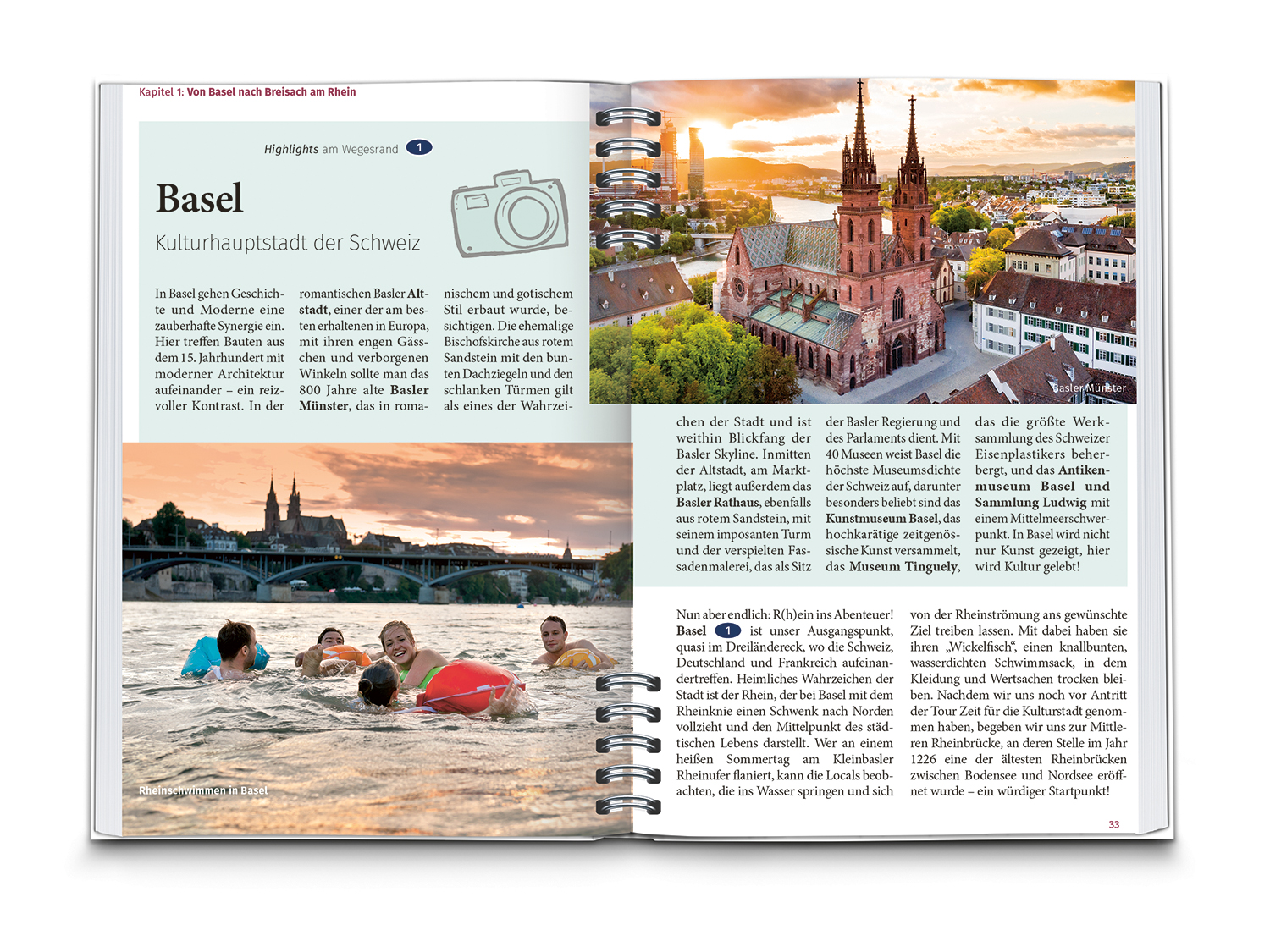 Basel inmitten des Dreiländerecks bildet den kulturellen Startpunkt dieser Reise entlang des Rheins. Auf Höhe von Breisach am Rhein lohnt linker Hand des Stromes ein Abstecher in die Festungsstadt Neuf-Brisach - ein Meisterwerk französischer Baukunst, ehe es durch die milde Weinbauregion am Fuße des Kaiserstuhls geht. Die Kleinstadt Kehl hat auf der gegenüberliegenden, elsässischen Rheinseite eine besonders bekannte Nachbarin: Straßburg, die "Hauptstadt Europas" mit ihrer historischen Altstadt und dem weltberühmten Münster.