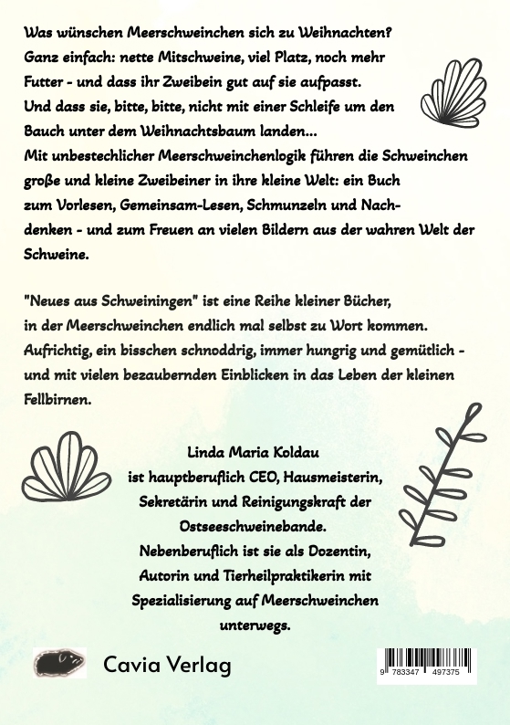 Was wünschen Meerschweinchen sich zu Weihnachten? Ganz einfach: nette Mitschweine, viel Platz, noch mehr Futter - und dass ihr Zweibein gut auf sie aufpasst. Und dass sie, bitte, bitte, nicht mit einer Schleife um den Bauch unter dem Weihnachtsbaum landen.Mit unbestechlicher Meerschweinchenlogik führen die Schweinchen große und kleine Zweibeiner in ihre kleine Welt: ein Buch zum Vorlesen, Gemeinsam-Lesen, Schmunzeln und Nachdenken - und mit vielen bezaubernden Abbildungen aus der wahren Welt der Schweine.