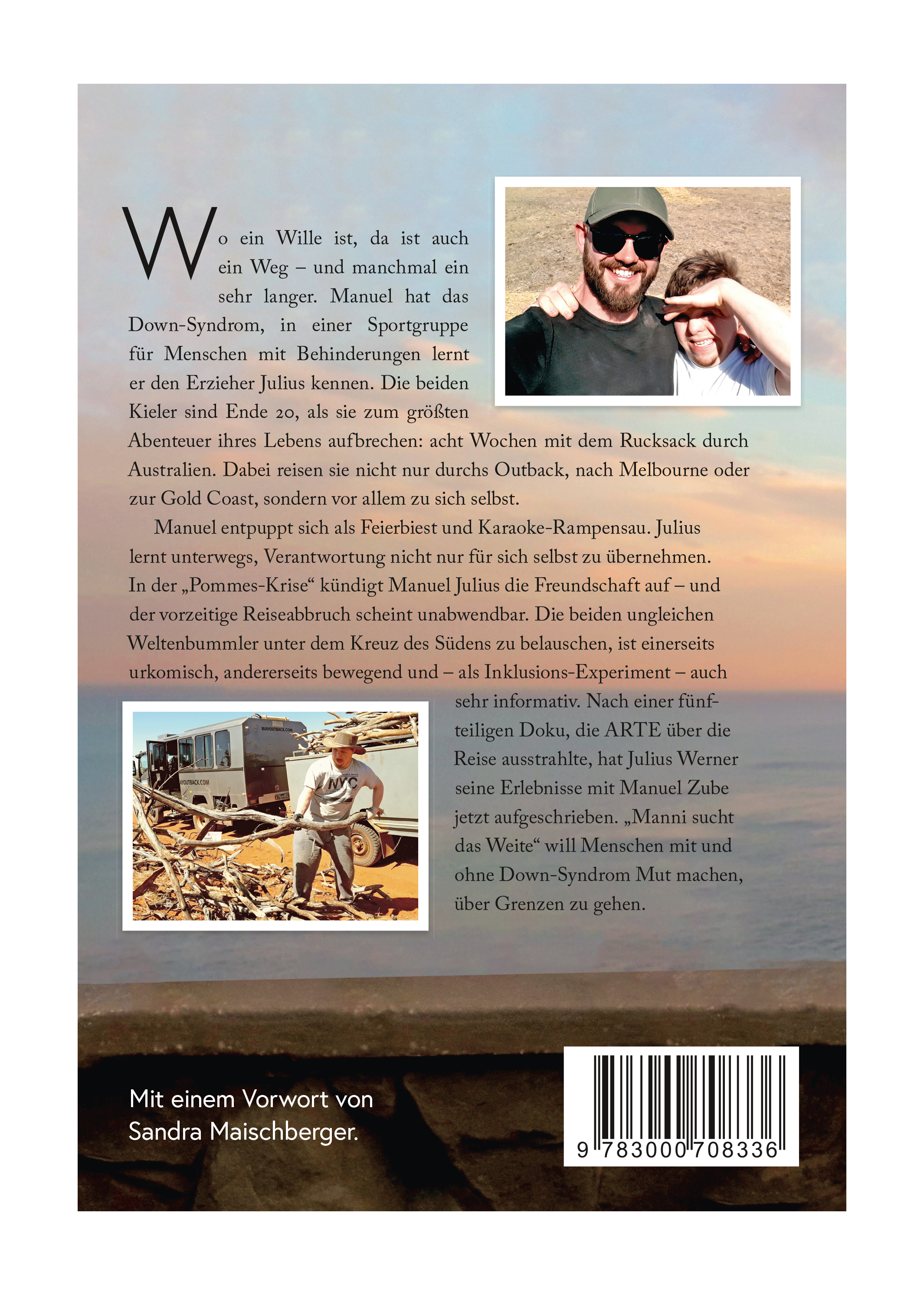 | Schlagworte | Abenteuer • arte • Australien • Backpacking • Behinderung • Dokumentation • Down-Syndrom • Erzieher • Freundschaft • Heilpädagogik • Inklusion • Manuel Down Under • Pädagogik • Reisebericht • Sandra Maischberger • Trisomie 21 |