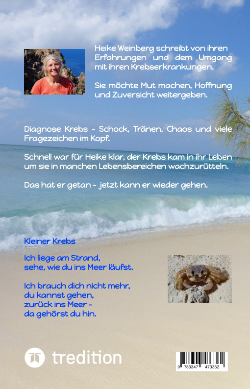 Diagnose Krebs - Schock, Tränen, Chaos und viele Fragezeichen im Kopf. Schnell war für Heike klar, der Krebs kam in ihr Leben um sie in manchen Lebensbereichen wachzurütteln. Das hat er getan, jetzt kann er wieder gehen. Heike Weinberg schreibt von ihren Erfahrungen und dem eigenwilligen Umgang mit ihren Krebserkrankungen. Sie möchte anderen Krebserkrankten und Angehörigen Mut machen, Hoffnung und Zuversicht weitergeben.
