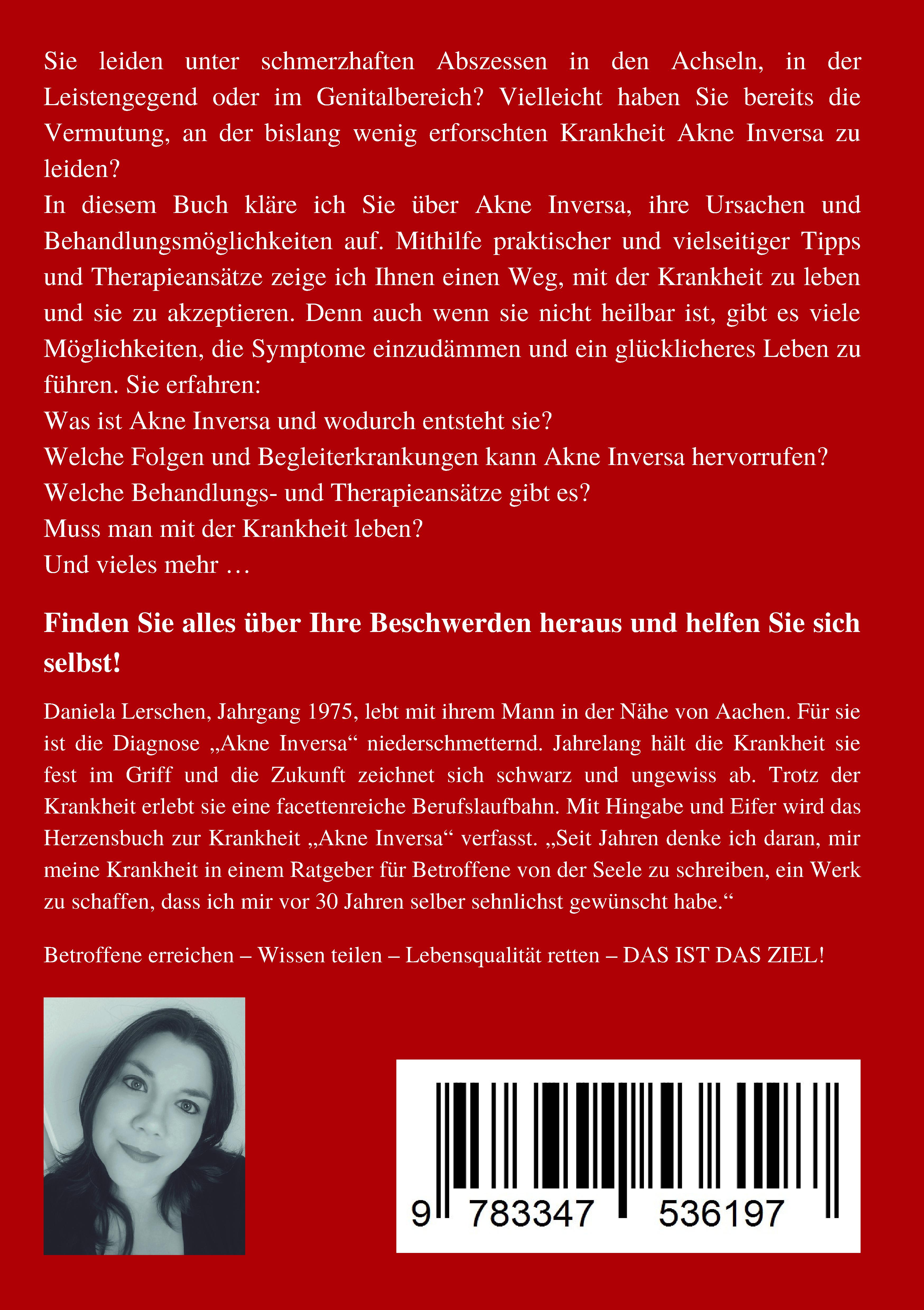 Diagnose: Akne InversaDie Autoimmunerkrankung: Ursachen, Symptome, Behandlung & Tipp`s für die Alltagsbewältigung mit Hidradenitis suppurativa (Acne Inversa)Sie leiden unter schmerzhaften Abszessen in den Achseln, in der Leistengegend oder im Genitalbereich? Haben Sie schon einmal von "Akne Inversa" gehört oder haben Sie bereits die Vermutung, an der bislang wenig erforschten Krankheit zu leiden?Wollen Sie alles über "Akne Inversa" erfahren und lernen, wie Sie mit der Krankheit umgehen können?Der Ratgeber setzt Sie umfassend rund um "Akne Inversa". in Kenntnis. Die chronische Krankheit greift den ganzen Körper an und gilt als Systemerkrankung. Sie erfahren, mit was Sie es bei der Krankheit "Akne Inversa" zu tun haben.Freuen Sie sich auf ehrliche Informationen und Tipps aus dem realen Leben der Autorin, die sich bereits in der Praxis bewährt haben. Sie erhalten detaillierte Beschreibungen der verschiedenen Therapieansätze, und zwar sowohl der konventionellen als auch der unkonventionellen Art."Akne Inversa" ist eine hochkomplexe Erkrankung, die eine breite Palette an Maßnahmen zu ihrer Bekämpfung erfordert.Wollen Sie wissen, wie Sie Ihren eigenen Weg finden, mit der Krankheit zu leben und sie zu akzeptieren?Im letzten Drittel des Ratgebers erwarten Sie hierfür spezielle Hilfsangebote und es werden Ihnen Ideen zur Selbsthilfe an die Hand gegeben. Alle Aktionen und Übungen sind problemlos zu Hause bzw. von zu Hause aus durchführbar. Sie können selbst aktiv Ihre seelische Gesundheit und das Knüpfen sozialer Kontakte fördern.Sie lernen mit der Krankheit zu leben und sie zu akzeptieren. Denn auch wenn sie nicht heilbar ist, gibt es viele Möglichkeiten, die Symptome einzudämmen und ein glückliches Leben zu führen. Trotz "Akne Inversa"!Sie wollen Ihr Leben verändern und "Akne Inversa" in den Griff kriegen?Jetzt haben Sie es in der Hand. Wagen Sie den mutigen Schritt. Holen Sie sich Ihre verloren gegangene Lebensqualität zurück. Lernen Sie, sich Gutes zu tun, und wie Entschleunigung Ihr Leben verändert.Aktivieren Sie Ihre körpereigenen Mechanismen und starten Sie Ihre Selbst-Heilungskräfte. Lassen Sie "Akne Inversa" nicht länger Ihr Leben bestimmen. Fangen Sie jetzt an und leben Sie ein freieres und glücklicheres Leben!Der Ratgeber "Diagnose: Akne Inversa" liefert Ihnen viele Informationen und Antworten auf Ihre Fragen:Was ist Akne Inversa? Welche Symptome gibt es?Welche Schweregrade gibt es & wie werden sie ermittelt?Was sind die Ursachen & Auslöser?Wie wird Akne Inversa diagnostiziert?Welche Auswirkungen hat Akne Inversa?Welches sind die häufigsten Begleiterkrankungen?Ist Akne Inversa eine "Behinderung"?Unterscheidet sich die Erkrankung bei Männern & Frauen?Akne Inversa in der Pubertät & den Wechseljahren?Was ist in Bezug auf COVID-19 zu beachten?Was für Therapiemöglichkeiten gibt es? Gibt es Heilung?Was bewirken Ernährung, Drogen, Alkohol & Zigaretten?Alltags-Tipps: Hausmittel, Kleidung, Körperpflege & SportUnd viel mehr...Betroffene erreichen - Wissen teilen - Lebensqualität retten - Das ist das Ziel dieses Buches!