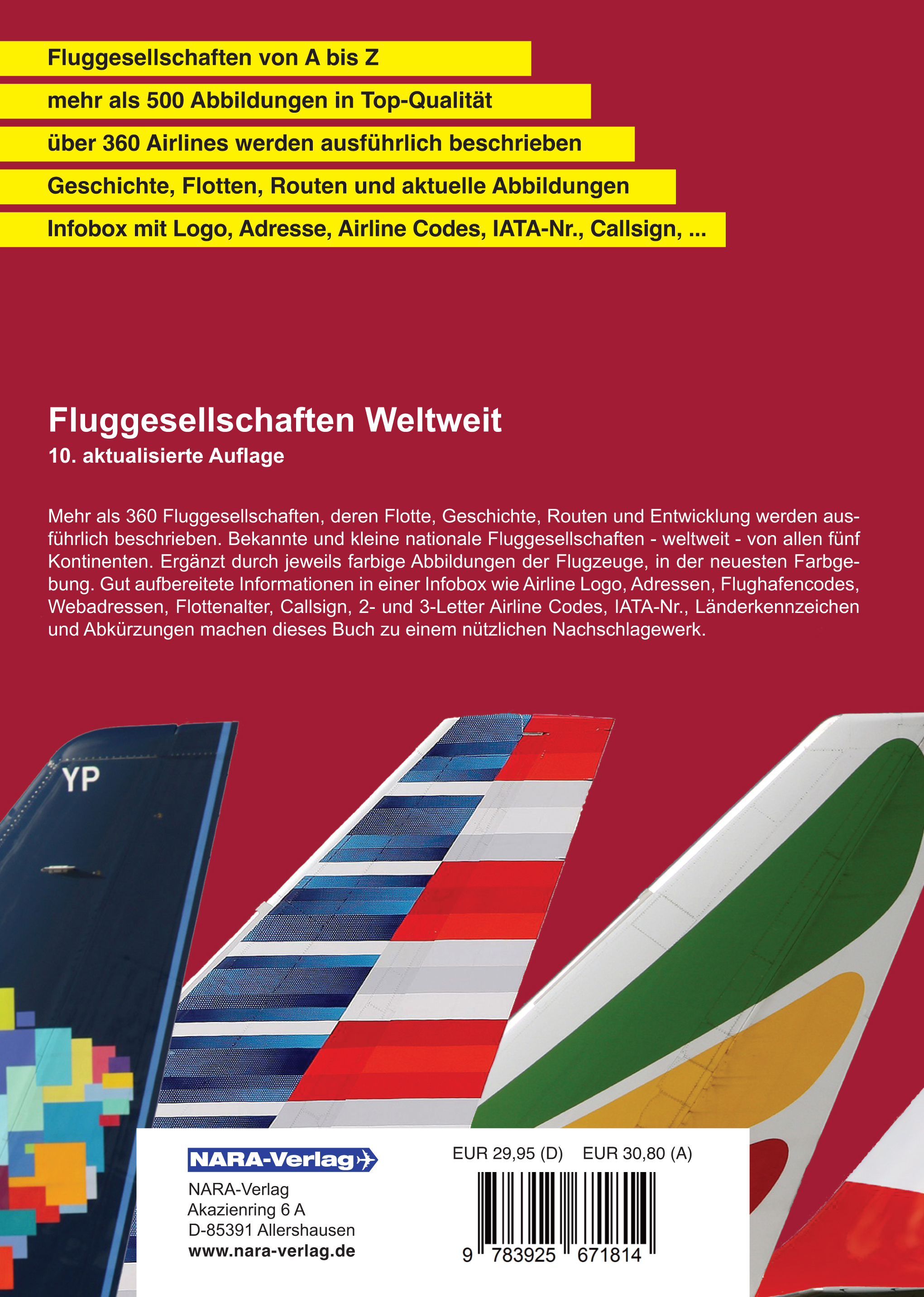 Insgesamt ca. 360 der wichtigsten Fluggesellschaften der Welt, deren Flotte, Routen, Geschichte