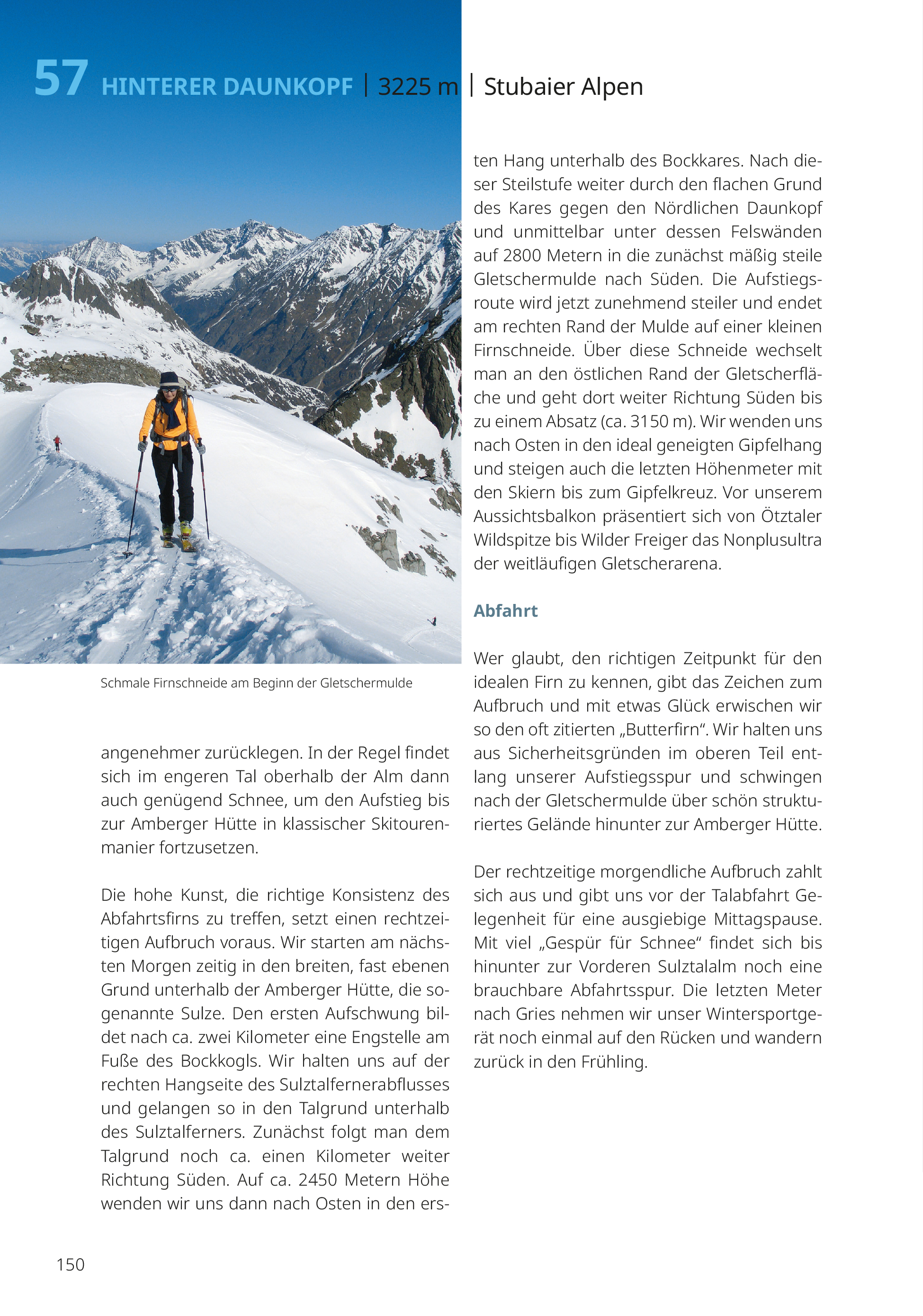 Ein früher Winterabend in Garmisch-Partenkirchen. Eine Stunde nach Betriebsschluss hat sich der Parkplatz an der Hausbergbahn relativ gelehrt. Relativ. Denn während die Pistenfahrer aufgrund der einsetzenden Dämmerung längst das Weite gesucht haben, kennen zahlreiche„Fitness-Tourengeher“ nach Feierabend nur ein Ziel: Aufstieg zum Drehmöser 9. Wie an einer Perlenschnur aufgereiht flackern die Stirnlampen der aufsteigenden After-Work-Karawane in der Dunkelheit. Es ist Dienstag, und die Pistenraupen ruhen. Zumindest solange, bis sich das Nachtspektakel in Wohlgefallen auflöst. Skipisten haben heute für die Tourengeher die gleiche Bedeutung wie Kletterhallen für die Kletterer: Hier kann man auch bei schlechteren Wetterbedingungen Sport, Fitness und Geselligkeit zum Beispiel im Rahmen einer After- Work-Tour elegant miteinander verknüpfen. Es entsteht an bestimmten Abenden eine echte „Win-win-Situation“ zwischen den an der frischen Luft Bewegung suchenden Tourengehern und den Umsatz machenden Hüttenwirten. Dass Skipisten in Bayern keine Sportstätten, sondern Teil der freien Natur sind und damit auch für Skitourengeher unter Einhaltung ent- sprechender Regeln (siehe S. 15) zur Verfügung stehen, ist seit November 2013 durch den Bayerischen Verwaltungsgerichtshof abschließend geklärt worden. Pistensperrungen dürfen und müssen nur dann erfolgen, wenn akute Gefahren wie die Pistenpräparierung mit Seilwinden oder Lawinensprengungen drohen. Die pauschale Sperrung ganzer Skigebiete für Tourengeher, wie einst trotz der Gerichtsentscheidung durch die Gemeinde Schliersee für das Skigebiet am Spitzingsee angeordnet, ist nach Auffassung des Deutschen Alpenvereins somit rechtswidrig. Mit der Aktion „Skitouren auf Pisten“ fungiert der DAV seit 2003 erfolgreich als Vermittler zwischen den Fronten. Ziel dieser Moderation ist die bestmögliche Lösung für jedes Skigebiet, die beispielsweise die Entwicklung und Ausweisung einer eigenen Aufstiegstrasse für Tourengeher bedeuten kann. Falls keine separate Route ausgewiesen ist, muss man ja nicht unbedingt zur Hochsaison tagsüber in einem stark frequentierten Pistengebiet „spazieren“ gehen. Übrigens sind entgegen mancher Vorurteile auch die meisten Pistenfahrer den Tourengehern gegenüber keinesfalls negativ eingestellt: Wir wurden während unserer Recherche jedenfalls niemals „angefeindet“. Auch die Wanderer haben sich nach jahrelangen Irritationen an die Mountainbiker gewöhnt … Unser Freizeitführer will das Pistengehen ohnehin auch als „Sprungbrett“ für Skitouren im freien Gelände verstanden wissen. Wer zu Weihnachten eine Tourenausrüstung geschenkt bekommt, möchte sie gerne ausprobieren. Die Piste eignet sich hervorragend, um sowohl an der Ausrüstung als auch an der Technik zu feilen, ohne mit den objektiven Gefahren im freien Gelände und womöglich schwierigem Tiefschnee bei der Abfahrt konfrontiert zu sein. Und der Touren-Neuling muss sich nicht immer einen erfahrenen Partner suchen, um einfach loszuziehen! Nach einer kurzen Eingewöhnphase ist dann die Zeit reif für die leichten Skitouren im Gelände. Und wer diesen faszinierenden Sport gerne ausübt, wird mit Sicherheit den geeigneten Pisten-Skitouren-Mix für sich herausfinden und sich im Lauf der Saison womöglich sogar für anspruchsvollere Ziele gewappnet fühlen. Viel Spaß und Freude bei den Touren! Michael Reimer und Klaus Stierhof