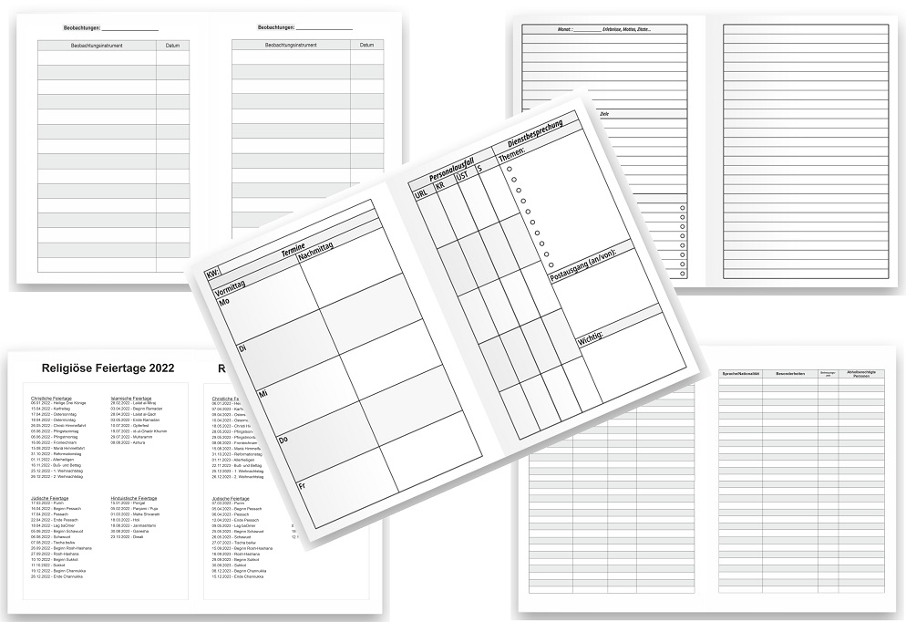 Kita-Planer 2022/23Sie entscheiden, wann Ihr Kalender beginnt:Der Kalender ist ohne feste Monatseintragungen. Sie können ihn von Januar 2022 - März 2023 nutzen oder von August2022 - Oktober 2023.Jede Kalenderwoche ist auf einer Doppelseite dargestellt (inkl. Mitarbeiterübersicht, Notizen und Besprechungen)- stabiler Kalender durch 2 transparente Schutzdeckel- inkl. transparente Tasche, hinten im Kalender für Ihre persönlichen Notizen- DIN A4 Format- 1 Woche auf 2 Seiten- 56 Wochen - 14 Monate- Gruppenlisten mit abholberechtigten Personen- Beobachtungen- Termine- Personal- Erledigungen- Kontakte- Notizen- Schulferien bundesweit 2022 und 2023- interkulturelle Feiertage 2022 und 2023(christliche, islamische, jüdische und hinduistische)- Jahresübersichten 2022 und 2023- Adress-, Telefon- und E-Mail-Verzeichnis- Planungsübersichten
