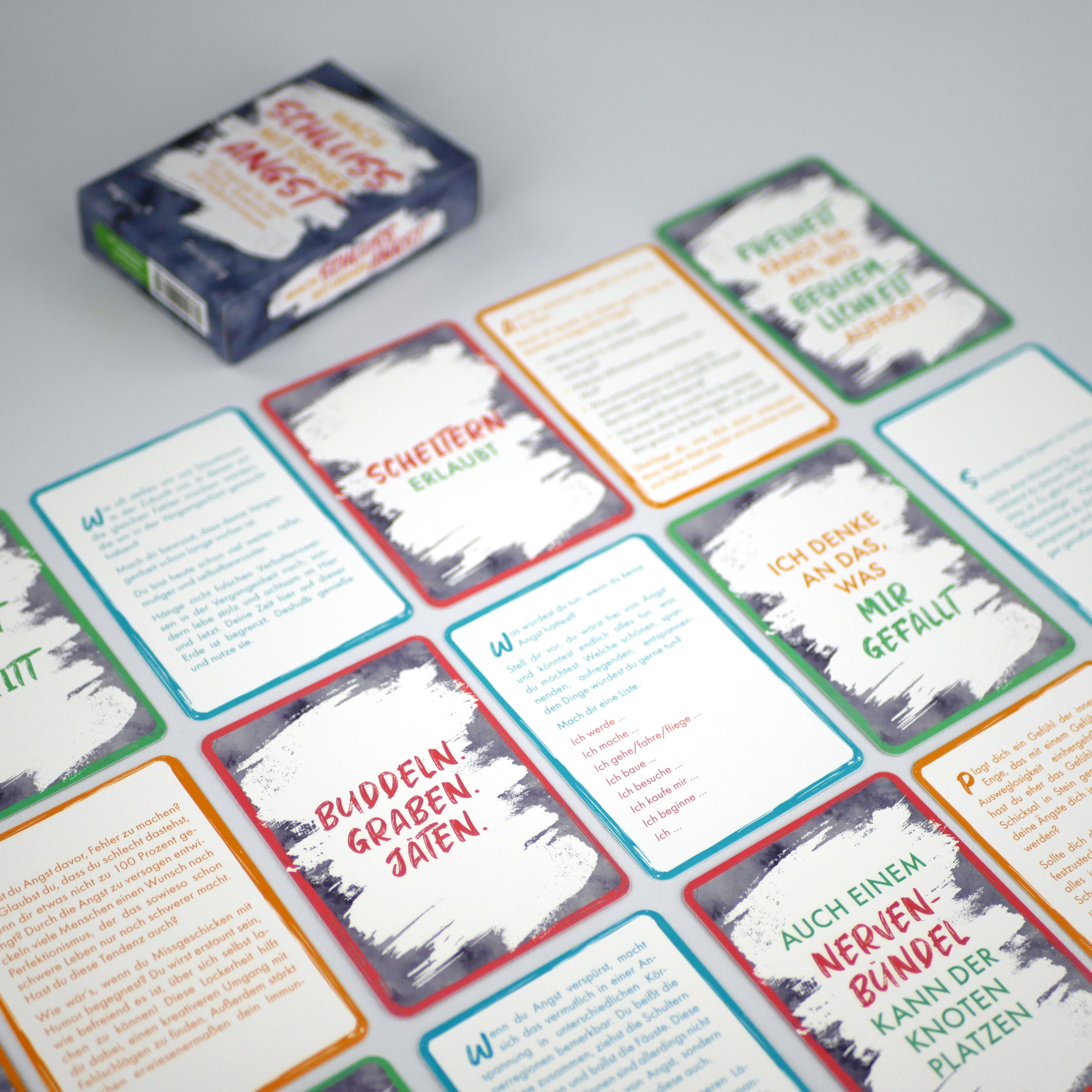 | Schlagworte | Achtsamkeit • Affirmationen • Angst • angst bekämpfen • Ängste • Ängste bekämpfen • Ängste überwinden • Anststörungen • Atemtechniken • Coaching • Erschöpfung • Glück • Karten • Panik • Panikattacken • Selbstbewusstsein • Selbsthilfe • Selbstvertrauen • Übungen |