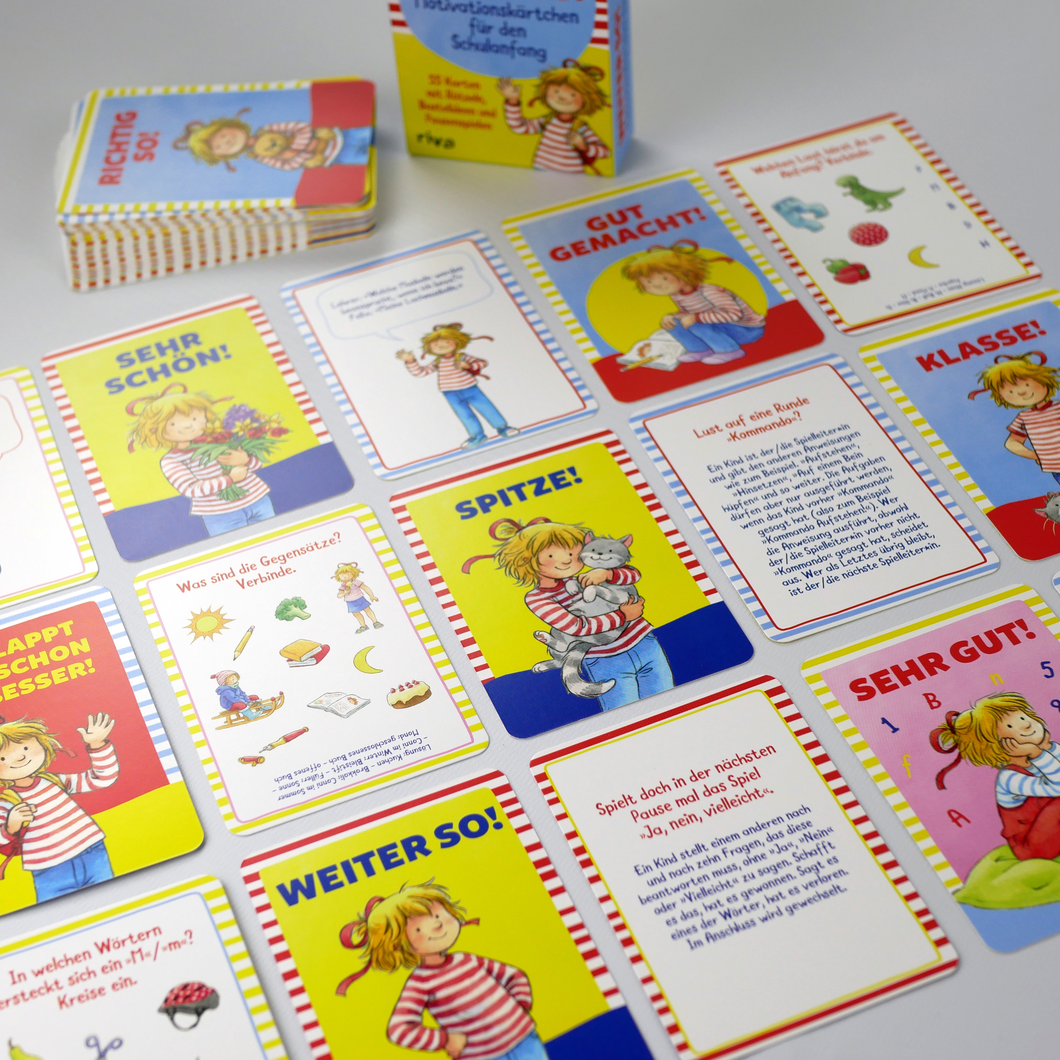 Voller Vorfreude, vielleicht auch etwas ängstlich, stellen sich die Kinder neuen, spannenden Eindrücken und Erfahrungen. Damit die Kinder Spaß am Lernen und Entdecken haben, gibt es diese Motivationskärtchen. Ob für eine erledigte Hausaufgabe, eine kreative Idee, Hilfsbereitschaft einem/einer Mitschüler*in gegenüber oder als kleine Aufmunterung zwischendurch sie bieten für jede Gelegenheit die passende Motivation. Jede Karte enthält außerdem ein Rätsel, einen Witz, eine Bastelidee oder ein Pausenspiel. Zusammen mit ihrer Freundin Conni meistern die Kinder so das Abenteuer Schule.