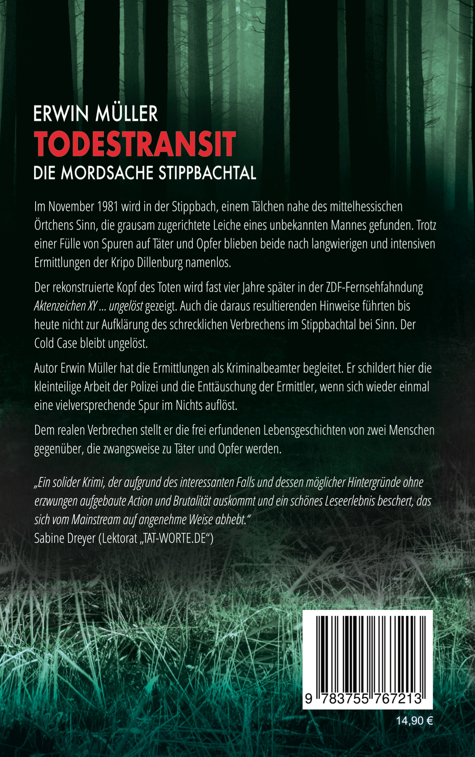 Erwin Müller wurde 1953 im Hessischen Hinterland geboren, ist dort aufgewachsen und heute noch wohnhaft. Von 1975 bis 2013 war der Autor Beamter der Hessischen Kriminalpolizei mit Dienstorten in Frankfurt/Main, Dillenburg und Gießen und in diesen spannenden Jahren vorwiegend mit Kapitaldelikten und Fällen der Rauschgiftkriminalität befasst. Er ist verheiratet und Vater zweier erwachsener Töchter. Auch nach der Pensionierung gab und gibt es für ihn interessante Tätigkeiten; als Interviewer eines Sozialforschungsinstitutes, als Mitarbeiter im Dezernat Ausländerwesen des Regierungspräsidiums Gießen und in der TFI (Task Force Impfen) des Hessischen Innenministeriums. Zum Schreiben kam er eher aus Zufall, als beabsichtigt war, die Drittschrift einer Mordermittlungsakte dem Reißwolf zu überlassen. Zu schade fand er und hatte den Hintergedanken, aus dem Stoff eine Geschichte zu weben, die den damals ungeklärten Fall endlich (wenn auch nur virtuell) löst.