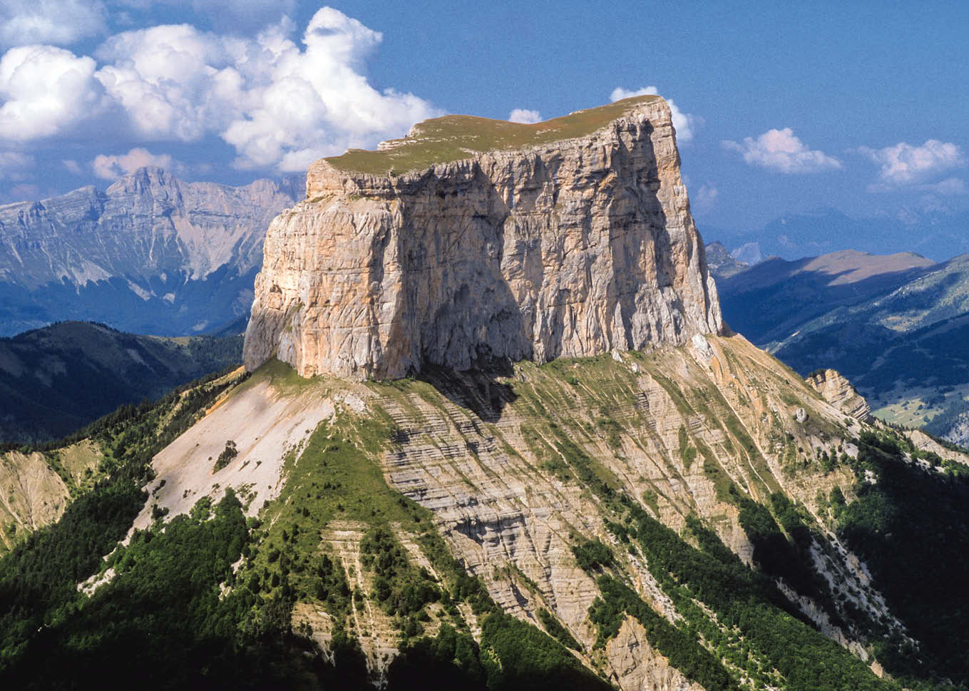 Avec ses vastes hauts plateaux bordés de précipices tranchants comme un couteau, ses gorges sauvages et ses grottes, ses forêts de chênes et ses fourrés de garrigue, ses villages retranchés du monde et ses bourgs animés, le Dauphiné ouest est d'une incroyable diversité. La région de randonnée s'étend entre Grenoble et Sisteron, limitée à l'est par le cours du Drac et à l'ouest par le Rhône. On y visite l'impressionnant plateau calcaire de la Réserve Naturelle des Hauts Plateaux du Vercors, la région de la Drôme, le Pays du Buëch avec ses magnifiques balcons panoramiques ainsi que le bastion calcaire du Massif du Dévoluy qui rappelle les hautes Alpes.