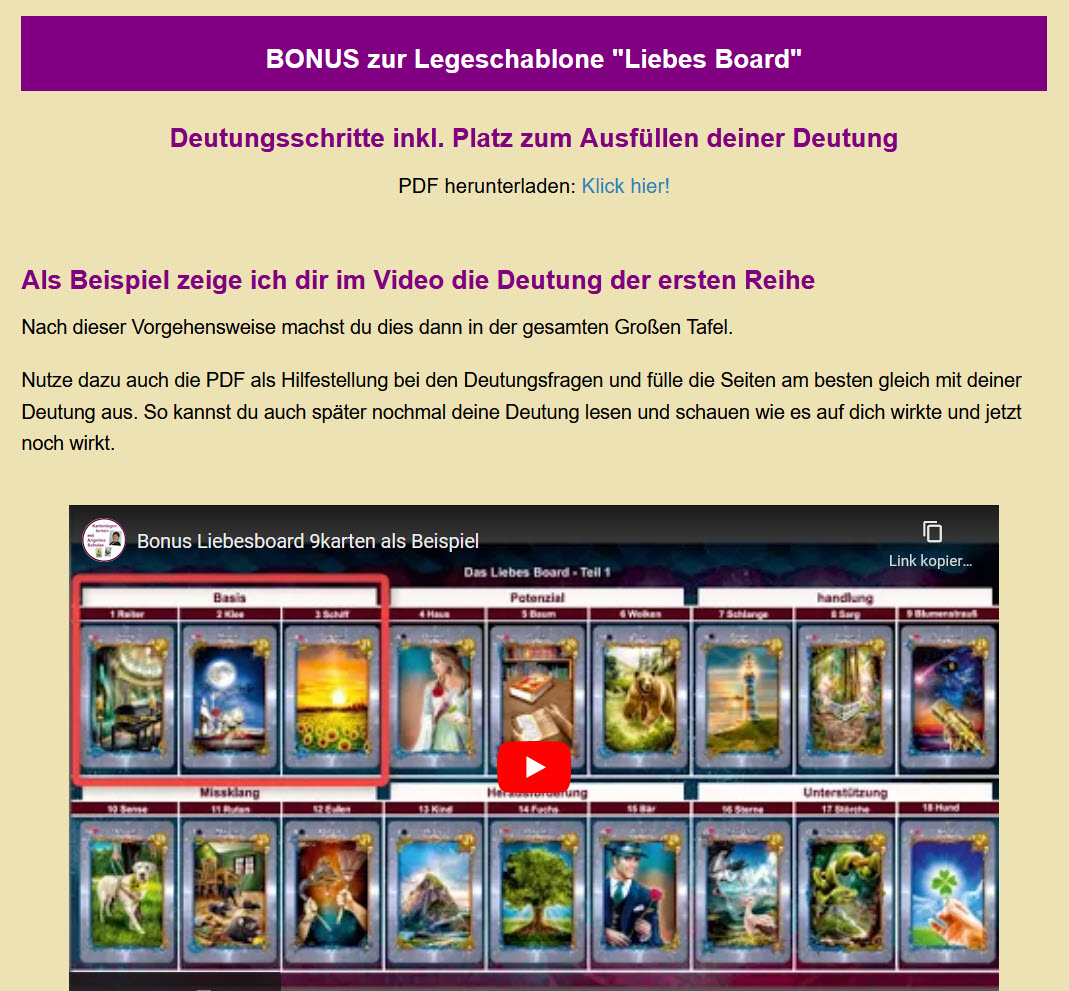 Große Tafel Lenormand 9x4 Legeschablone "Liebes Board" inkl. Bonus