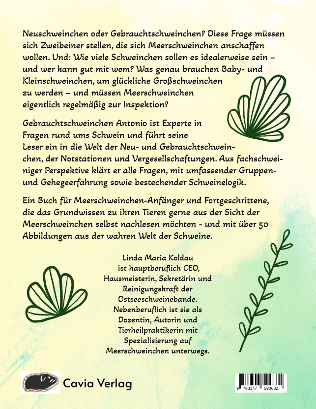 Neuschweinchen oder Gebrauchtschweinchen? Diese Frage müssen sich Zweibeiner stellen, die sich Meerschweinchen anschaffen wollen. Und: Wie viele Schweinchen sollen es idealerweise sein - und wer kann gut mit wem? Was genau brauchen Baby- und Kleinschweinchen, um glückliche Großschweinchen zu werden - und müssen Meerschweinchen eigentlich regelmäßig zur Inspektion? Gebrauchtschweinchen Antonio ist Experte in Fragen rund ums Schwein und führt seine Leser ein in die Welt der Neu- und Gebrauchtschweinchen, der Notstationen und Vergesellschaftungen. Aus fachschweiniger Perspektive klärt er alle Fragen, mit umfassender Gruppen- und Gehegeerfahrung sowie bestechender Schweinelogik.Ein Buch für Meerschweinchenfreunde und solche, die es werden wollen - für kleine und große Leser von 6 bis 99 Jahren.