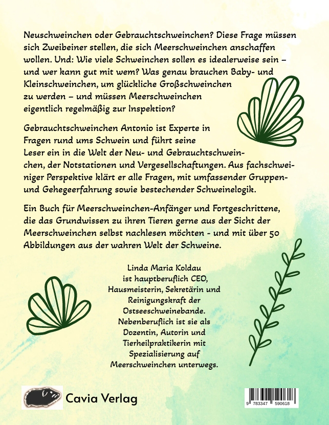 Neuschweinchen oder Gebrauchtschweinchen? Diese Frage müssen sich Zweibeiner stellen, die sich Meerschweinchen anschaffen wollen. Und: Wie viele Schweinchen sollen es idealerweise sein - und wer kann gut mit wem? Was genau brauchen Baby- und Kleinschweinchen, um glückliche Großschweinchen zu werden - und müssen Meerschweinchen eigentlich regelmäßig zur Inspektion? Gebrauchtschweinchen Antonio ist Experte in Fragen rund ums Schwein und führt seine Leser ein in die Welt der Neu- und Gebrauchtschweinchen, der Notstationen und Vergesellschaftungen. Aus fachschweiniger Perspektive klärt er alle Fragen, mit umfassender Gruppen- und Gehegeerfahrung sowie bestechender Schweinelogik.Ein Buch für Meerschweinchenfreunde und solche, die es werden wollen - für kleine und große Leser von 6 bis 99 Jahren.