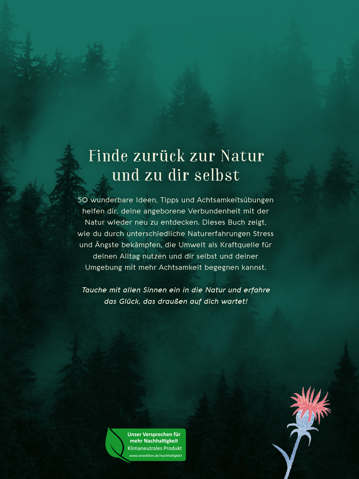Jahrtausendelang haben wir Menschen in enger Verbindung zur Natur gelebt. Erst in den letzten Jahrzehnten haben wir den Bezug dazu mehr und mehr verloren. Dieses Buch hilft dir mit 50 wunderbaren Ideen, Tipps, Achtsamkeitsübungen und Rezepten, deine angeborene Verbundenheit zur Natur wieder neu zu entdecken. So erkennst du, wie du durch unterschiedliche Naturerfahrungen Stress und Ängste bekämpfen, die Umwelt als Kraftquelle für deinen Alltag nutzen und dir selbst und deiner Umgebung mit mehr Achtsamkeit begegnen kannst. Tauche mit allen Sinnen ein in die Natur und erfahre das Glück, das draußen auf dich wartet!