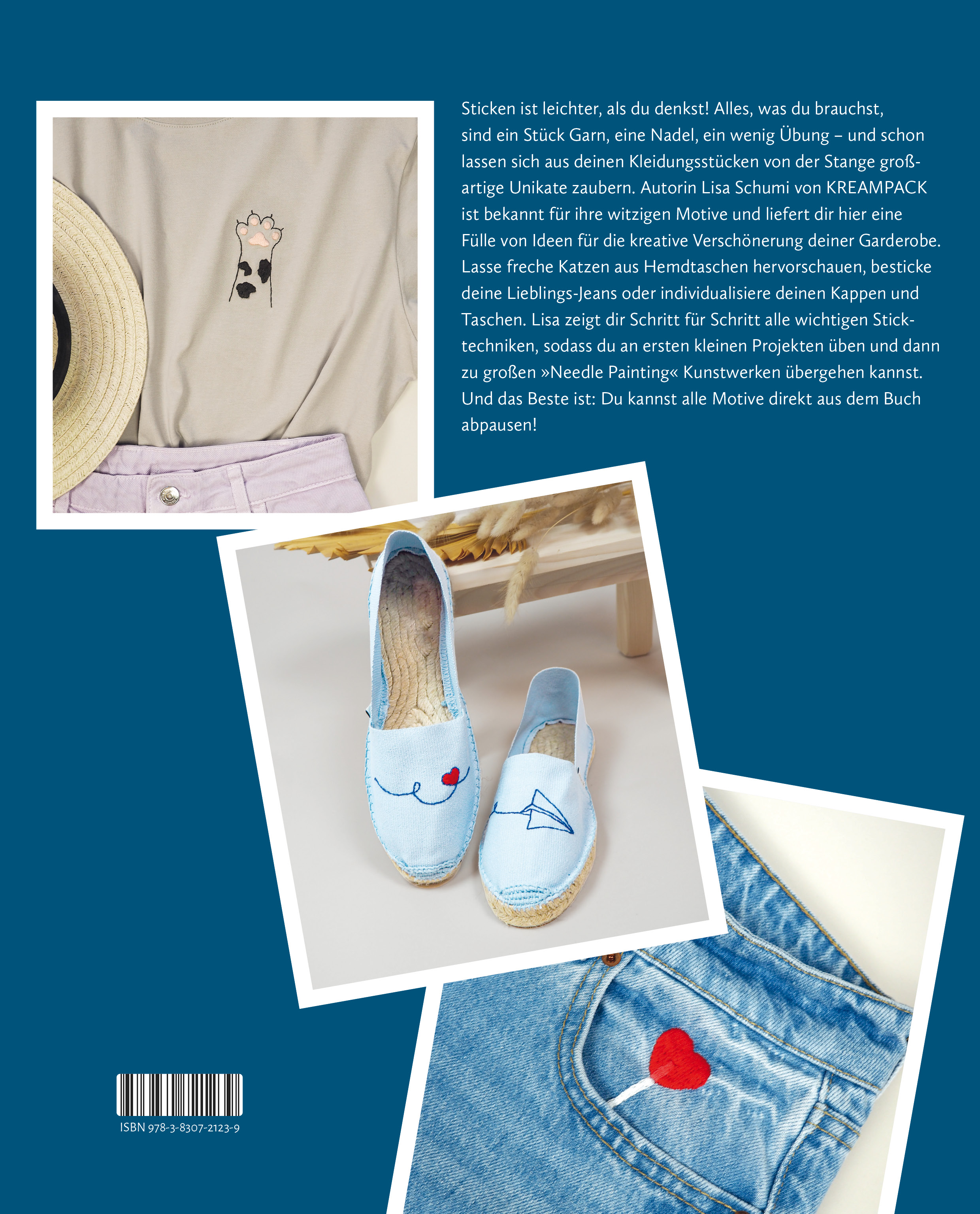 Sticken ist Trend! Alles, was es braucht, ist ein Stück Garn, eine Nadel und ein wenig Geschick – und schon lassen sich aus 08/15-Kleidungsstücken von der Stange Unikate zaubern. Autorin Lisa Schumi von KREAMPACK ist bekannt für ihre witzigen Motive und liefert mit diesem Buch eine Fülle von Ideen für die kreative Verschönerung der eigenen Garderobe. Alle Stickstiche sind detailliert erklärt, Schritt-für-Schritt-Bilder laden auch Anfänger:innen zum Nacharbeiten ein. Die Motive können direkt aus dem Buch abgepaust werden.