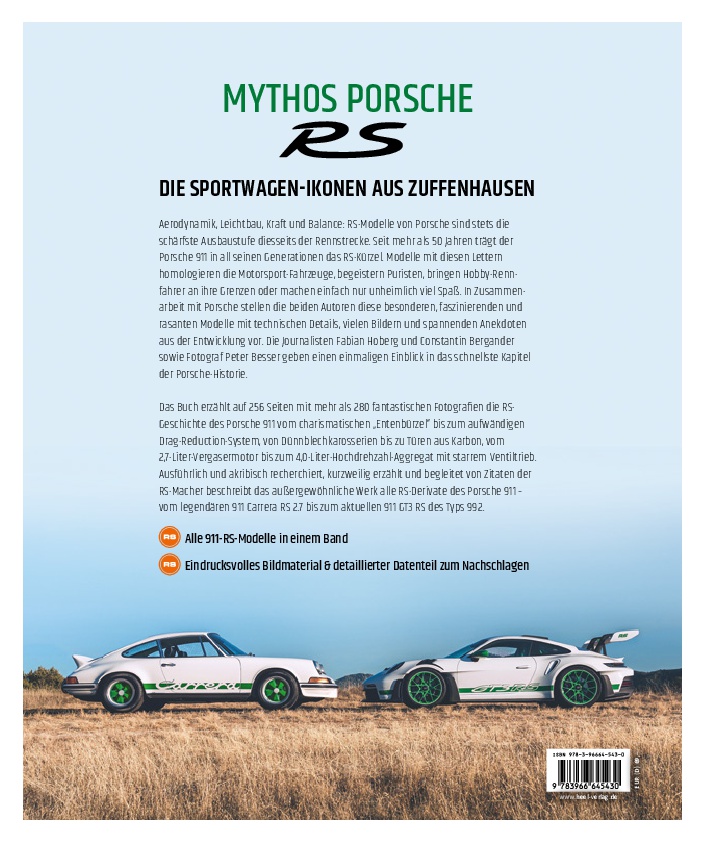 50 Jahre 911 Carrera RS: Aus diesem Anlass beleuchten die Profi-Automobil-Journalisten Constantin Bergander und Fabian Hoberg in ihrem neuen Werk die faszinierende Geschichte der RS-Modelle von Porsche. Aerodynamik, Leichtbau, Kraft und Balance: RS-Modelle von Porsche sind stets die schärfste Ausbaustufe diesseits der Rennstrecke. Seit mehr als 50 Jahren trägt der Porsche 911 in all seinen Generationen das RS-Kürzel. Modelle mit diesen Lettern homologieren die Motorsport-Fahrzeuge, begeistern Puristen, bringen Hobby-Rennfahrer an ihre Grenzen oder machen einfach nur unheimlich viel Spaß.In Zusammenarbeit mit Porsche stellen die beiden Autoren diese besonderen, faszinierenden und rasanten Modelle mit technischen Details, vielen Bildern und spannenden Anekdoten aus der Entwicklung vor. Die Autoren geben zusammen mit Fotograf Peter Besser einen einmaligen Einblick in das schnellste Kapitel der Porsche-Historie.Das Buch erzählt auf 256 Seiten mit mehr als 280 fantastischen Fotografien die RS-Geschichte des Porsche 911 vom charismatischen "Entenbürzel" bis zum aufwändigen Drag-Reduction-System, von Dünnblechkarosserien bis zu Türen aus Karbon, vom 2,7-Liter-Vergasermotor bis zum 4,0-Liter-Hochdrehzahl-Aggregat mit starrem Ventiltrieb. Ausführlich und akribisch recherchiert, kurzweilig erzählt und begleitet von Zitaten der RS-Macher beschreibt das außergewöhnliche Werk alle RS-Derivate des Porsche 911 - vom legendären 911 Carrera RS 2.7 bis zum aktuellen 911 GT3 RS des Typs 992.Fazit: Ein kiloschwerer, edler Prachtband im Großformat, der hochinformative Text, die ausführlichen technischen Daten und das emotionale Bildmaterial ergeben ein ganz besonderes Buch für ein besonderes Stück Porsche-Geschichte!