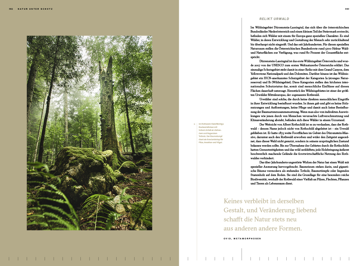 'Garniert mit traumhaften Fotos und klugen grafischen Lösungen kann man diesen Prachtband von hinten nach vorne oder aus der Mitte heraus lesen (...) es ist ein Buch geworden, das einlädt, sich in jedem Kapitel neu in den Alpenwald zu verlieben.'' *kleinezeitung.at