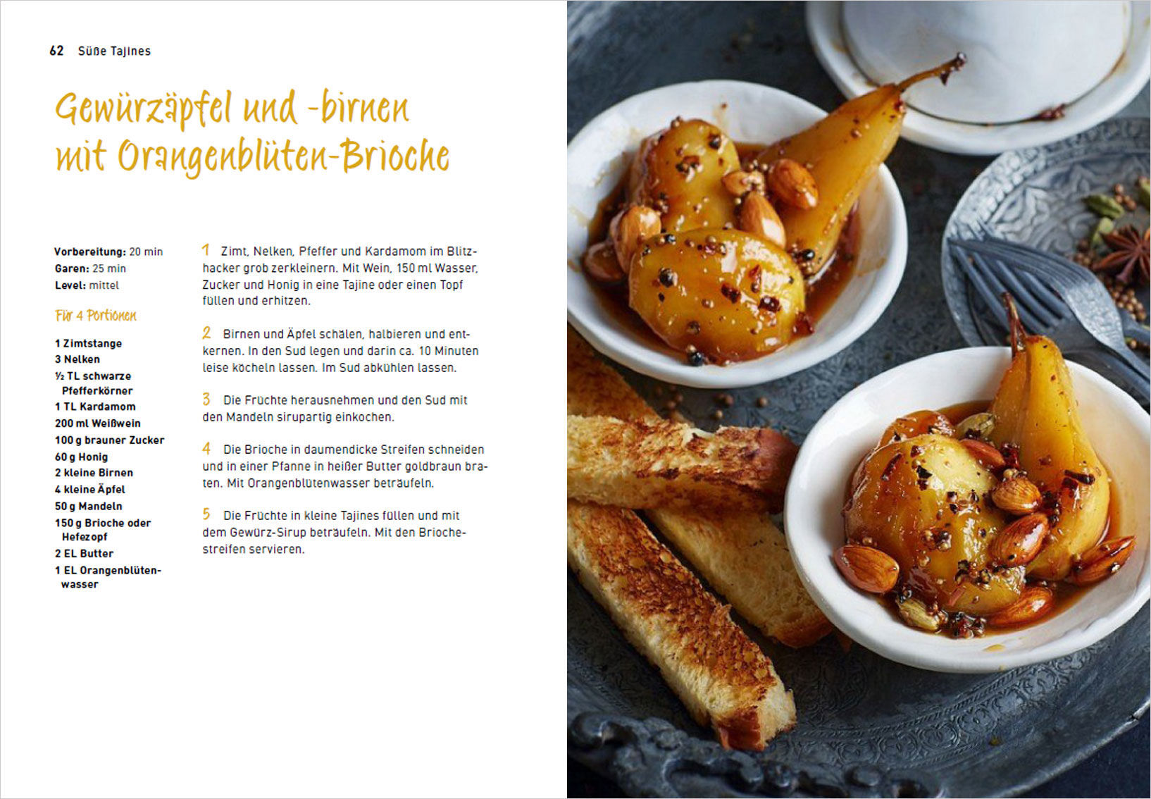 Tajine ist sowohl der Name dieses wunderschönen Gefäßes als auch der darin zubereiteten aromatischen Schmorgerichte. Durch das schonende Garen im eigenen Saft bei niedrigen Temperaturen entstehen intensive Aromen, die diese One-Pot-Meals so unglaublich lecker machen. Auf Fett kann dabei verzichtet werden. Köstlich gewürzt, Vorspeisen, Hauptgerichte und Desserts, mit Kichererbse, Aubergine, Möhre, Granatapfel, Dattel, Aprikosen und mehr. Wer fettarme, gesunde, aroma- und geschmacksintensive Essen mag, dem bietet dieses Buch abwechslungsreiche und innovative vegetarische Rezepte, ohne Fisch und Fleisch.