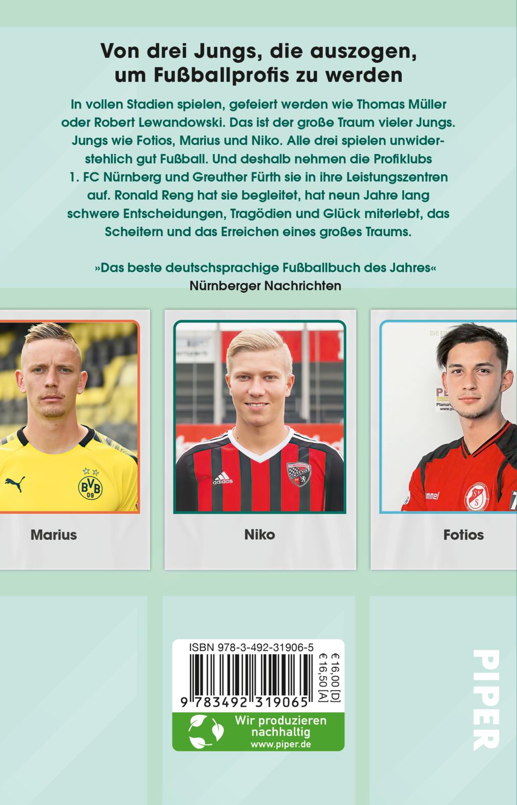 Nur eines unterscheidet Fotios, Marius und Niko von ihren Freunden in der nordbayerischen Provinz: Sie spielen alle drei unwiderstehlich gut Fußball. Noch bevor sie 14 werden, nehmen die Profiklubs 1. FC Nürnberg und Greuther Fürth sie in ihre Leistungszentren auf. Von da an führen ihre Leben in neue, unvermutete Richtungen. - Ein Buch über drei fantastische Jungs, die dribbeln wie Messi und von großen Karrieren träumen.