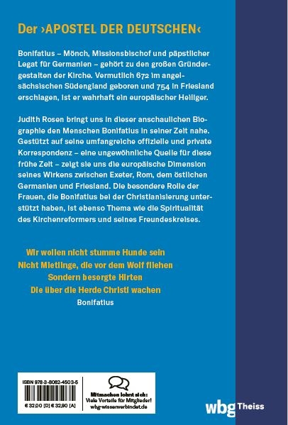 Für ihr Buch hat Judith Rosen die Korrespondenz des Mönchs ausgewertet - eine für das Frühmittelalter sehr unübliche und persönliche historische Quelle! So lernen wir einen Heiligen kennen, der mutig, ehrgeizig und streitbar war - einerseits fest im Denken seiner Zeit, aber auch reformorientiert und pragmatisch. Zitate aus seinen Briefen belegen das beeindruckende Lebenswerk eines Missionars, der Kirchengeschichte geschrieben hat. Selten zuvor dürfte das Leben des katholischen Heiligen derart detailliert nachgezeichnet worden sein!