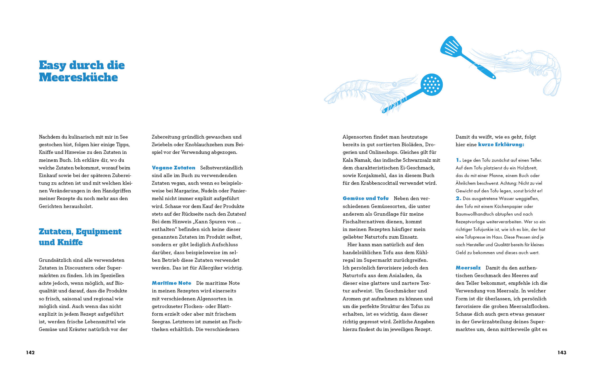 Ein Buch genau zum richtigen Zeitpunkt, denn Meeresbiologen warnen zunehmend dringlicher vor der Überfischung der Meere und ihren Folgen. Mit seinen veganen Antworten auf Sahnehering, Fischstäbchen, Labskaus, Sushi und Kaviar zeigt Alex Flohr nicht nur, dass altbekannte Klassiker auch vegan funktionieren, sondern liefert mit Dampfnudeln auf Algenpesto, maritimem Limettentofu oder dem saftigen Popeye- Burger ganz neue Inspirationen und Einblicke in die Vielseitigkeit, die pflanzliche Meeresaromen zu bieten haben. Ihm gelingt es, vegane Rezepte zu kreieren, die der Raffinesse einer Paella, der Aromatik eines geräucherten Lachsfilets und der Frische eines Heringssalats in nichts nachstehen. Abgerundet wird das Ganze mit veganen Alternativen zu traditionellen Fischrezepten wie Schlemmerfilet und Fischsuppe sowie mit originellen Begleitern wie Sanddorn-Mayonnaise und Algenbutter.