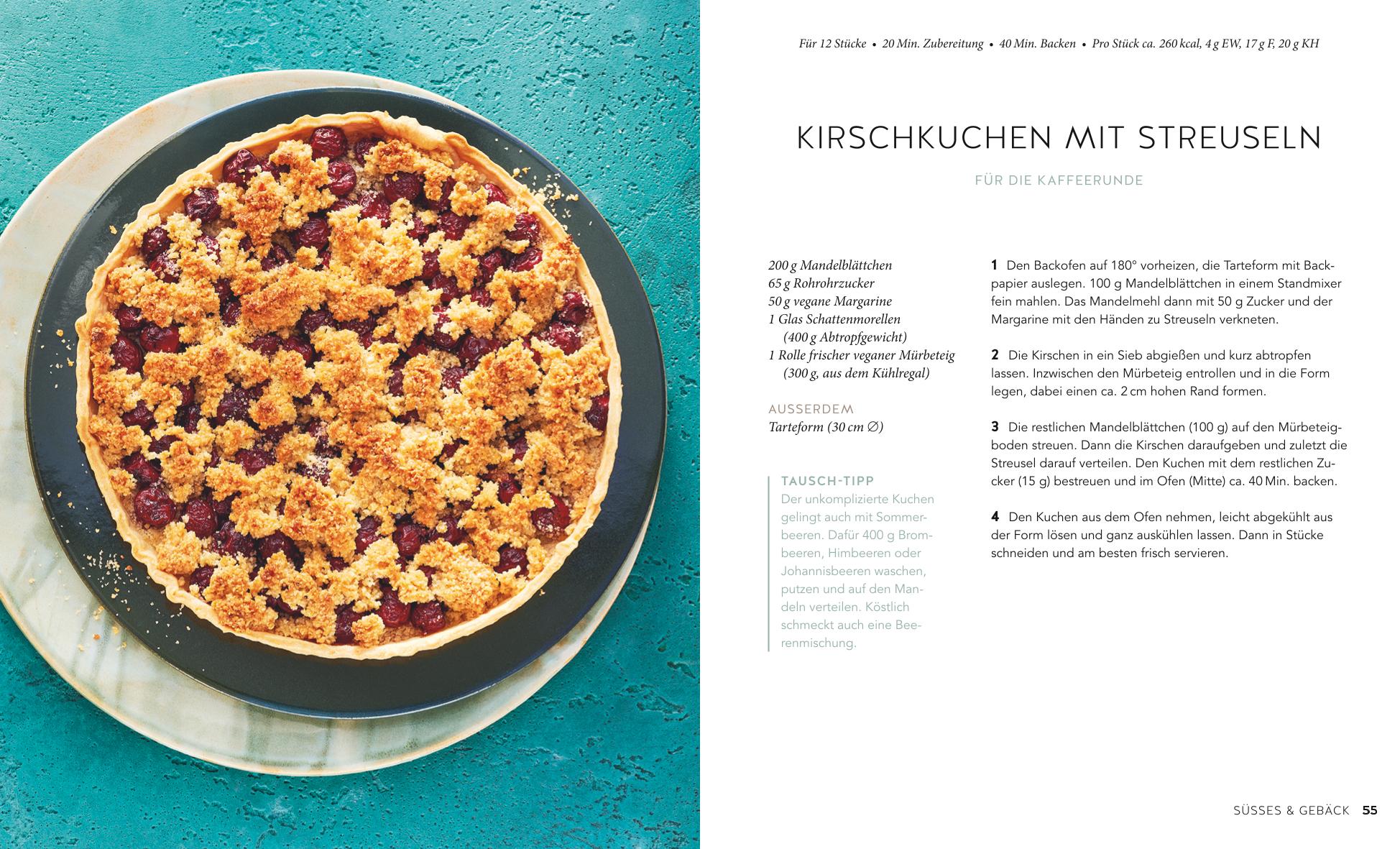 Auch Desserts und Kuchen gelingen vegan und mit nur 5 Zutaten - zum Beispiel Schokomousse mit Orange, Kirschkuchen mit Streuseln und Milchreis mit Bratapfel. Der Küchenratgeber vegan von GU ist ein tolles Geschenk für Studierende, Kochneulinge und Kochmuffel, die wieder den Einstieg ins Selbstkochen finden wollen.