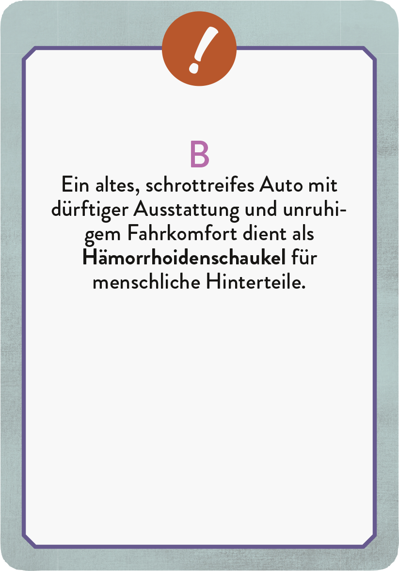 Das ebenso lustige wie lehrreiche Ratespiel um den Ruhrpott-Dialekt enthält 50 typische Worte und Ausdrücke, deren Bedeutung es zu erraten gilt. Die Antworten auf den Rückseiten der Quiz-Karten liefern zusätzliche Informationen zu Herkunft und Verwendung des jeweiligen Begriffs.