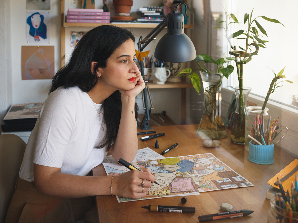 Ana Jarén ist eine Illustratorin aus Spanien. Nachdem sie ihre Karriere in einer PR-Agentur für Mode begonnen hatte, führten Anas Kreativität und ihre Leidenschaft für das Zeichnen sie zur Illustration. Sie zeichnet und malt mit der Hand und arbeitet mit Markern, Bleistiften und Acrylfarben, um das Leben, die Menschen und die täglichen Aktivitäten wunderschön einzufangen, immer mit einem scharfen Auge für kleine Details. Ihre Illustrationen, oftmals Frauen, sind von der Pop-Kultur inspiriert und nehmen den Betrachter mit auf eine suggestive Reise, die seine eigenen emotionalen Erfahrungen widerspiegelt. Anas Arbeiten wurden bereits in Vogue und Glamour veröffentlicht. Sie hat mit Marken wie FNAC, Springfield, Bombay Sapphire und vielen anderen zusammengearbeitet.