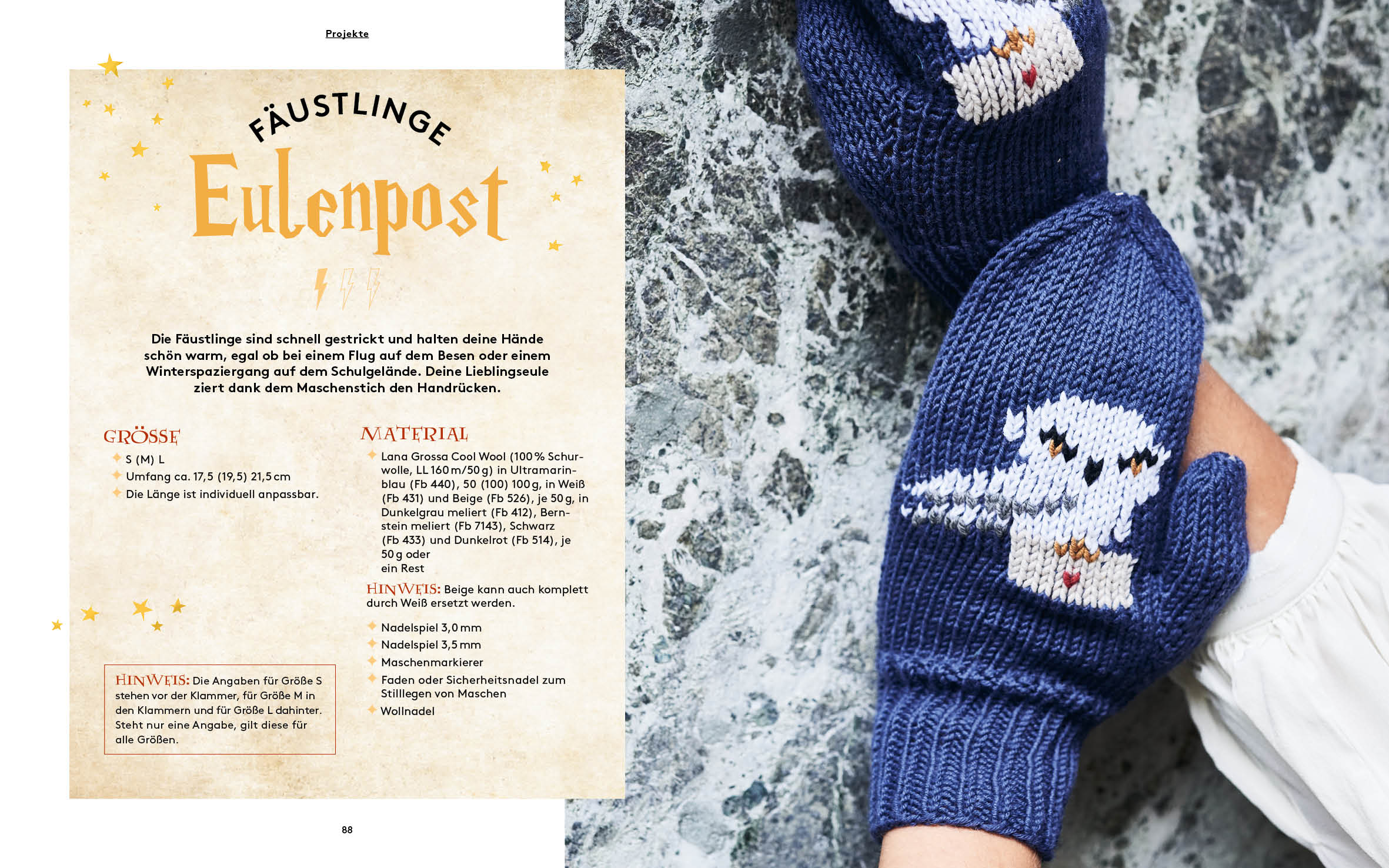- Pullover, Mützen, Fäustlinge und mehr für die ganze Familie können von Erstklässer*innen des Strickens, aber auch von voll ausgebildeten Magiern nachgestrickt werden