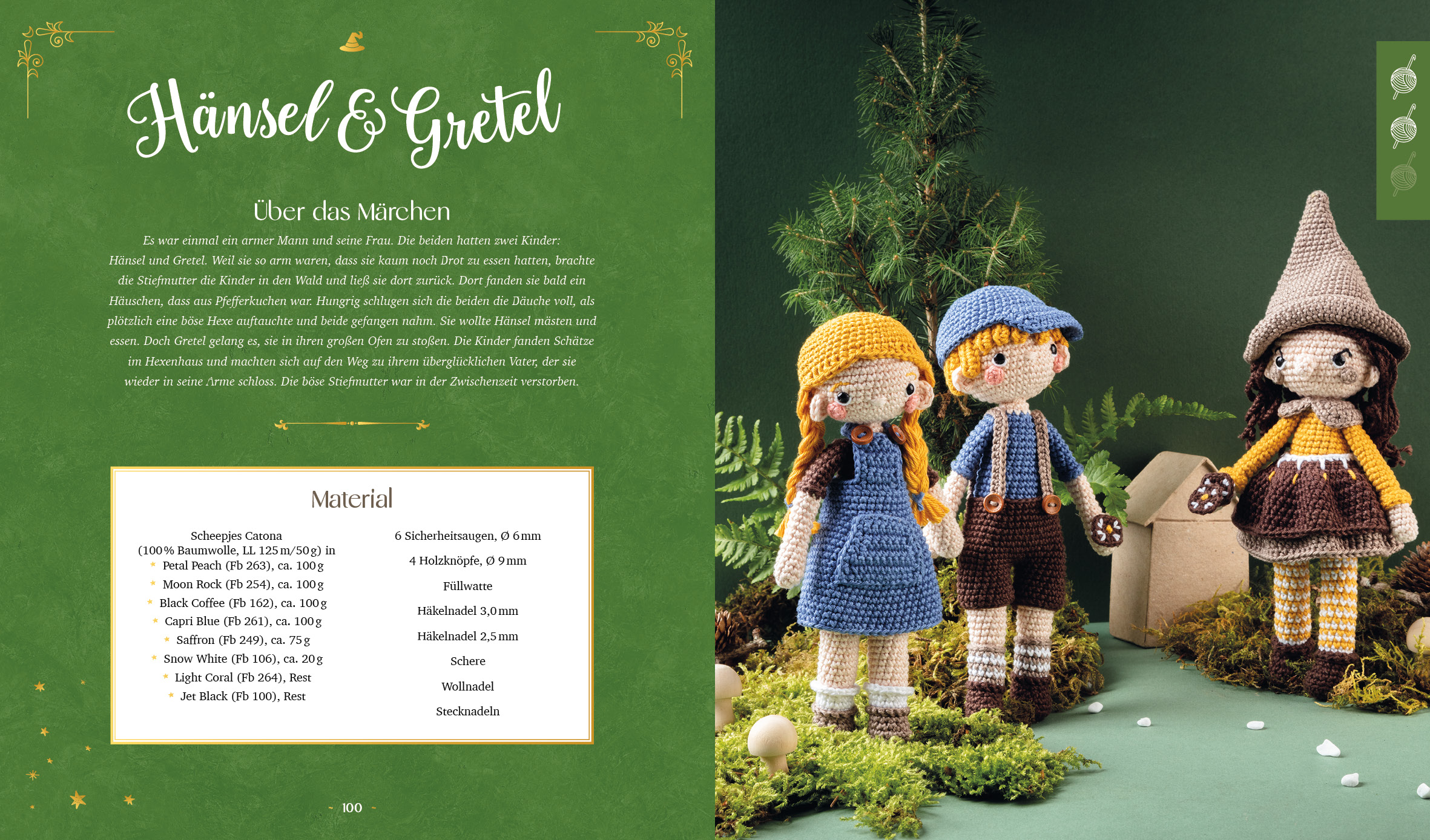 Ein wahres Häkelvergnügen mit Max & Moritz, die Witwe Bolte die Hähnchen klauen, dem Froschkönig, der die Prinzessin überzeugte, ihn zu küssen, Hänsel & Gretel, die sich gegen eine böse Hexe behaupten müssen und so viele mehr.
