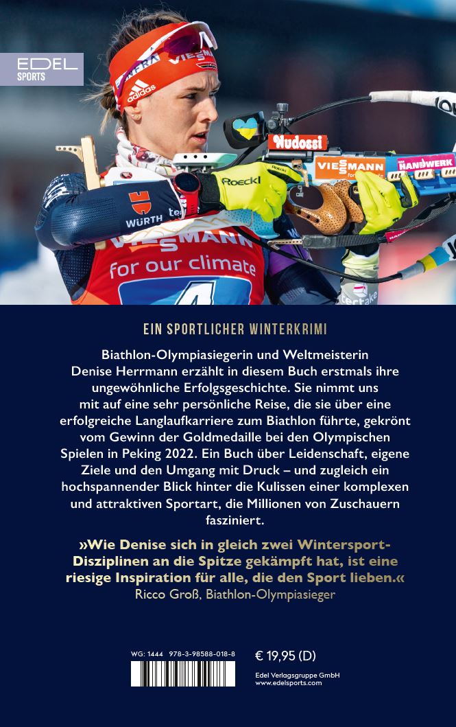 | Schlagworte | Auto-Biographie • Biathletin • Biathlon • Biathlon Biografie • Biathlon-Buch • Biografie • Buch • Denise Herrmann • exklusive Einblicke • Geschenk-Buch • Goldmedaille • Hermann • Langlauf • Leistungs-sport • Leistungssport • nordisch • Olympia • Olympiade • Olympiasiegerin • Olympia-Siegerin • Olympisches Gold • Olympische Spiele • Olympische Winter-spiele • Olympische Winterspiele • Profisport • Profisportler • Profi-sport-lerin • Schießen • Ski • Skifahren • Skilanglauf • Ski-Langlauf • Ski nordisch • Sport • Sportbuch • Sport-Buch • Sportlerbiografie • Sportlerin • Sportler-in-biografie • Winter Olympiade • Wintersport • Winter-Sport • zielsicher |