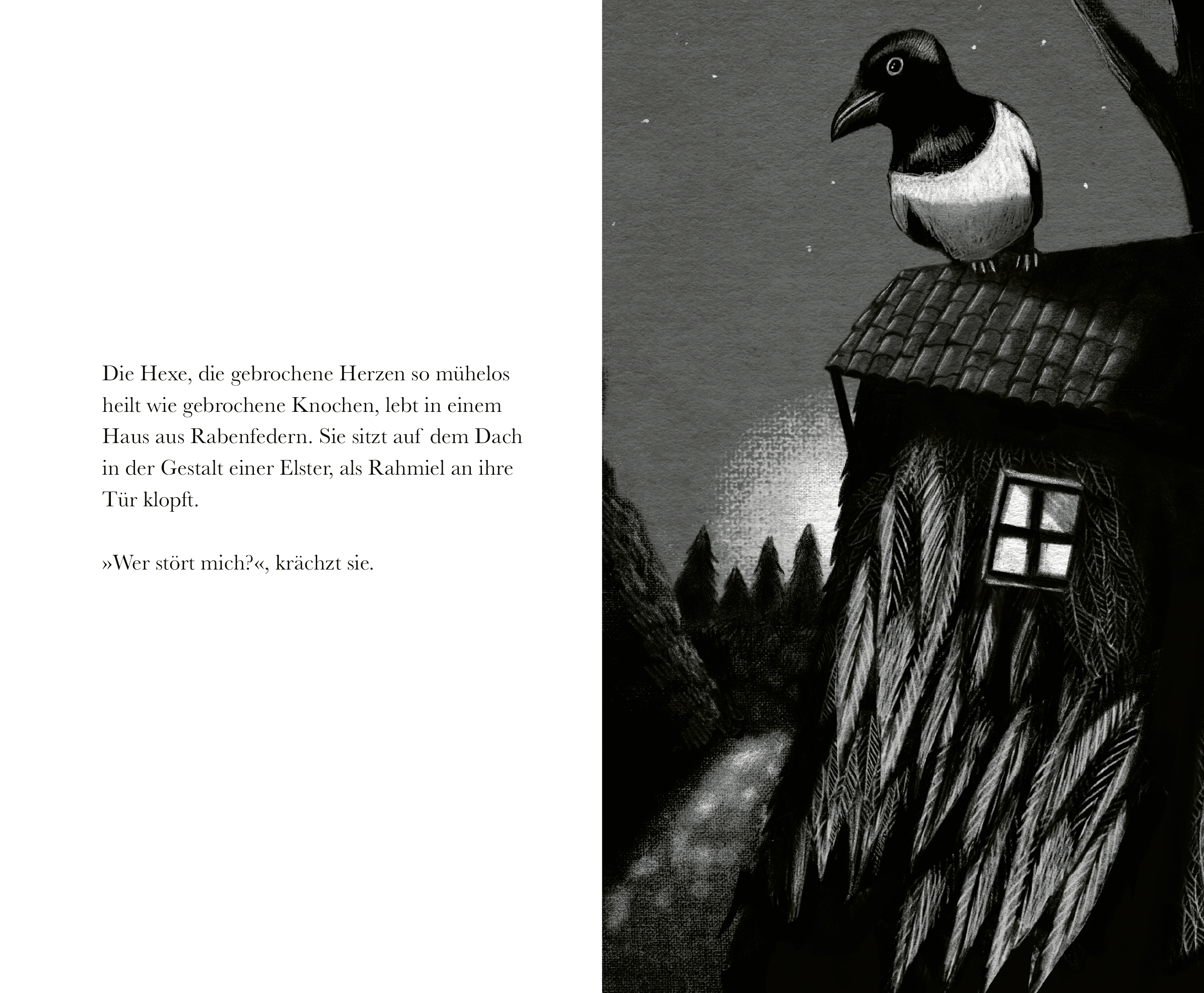 In der Stille und Dunkelheit der Nacht kniet ein Mädchen ganz allein am Rande eines Teiches. Sie ist jung und sehr, sehr schön, doch ihr Herz ist in tausend Stücke zerbrochen. Es scheint, als ob etwas Zauberei nötig ist, um die Traurigkeit in ihrem Herzen zu schmelzen. Ein Engel, eine Hexe und ein Rabe nehmen sich ihrer an und helfen, ihr Herz zu heilen.