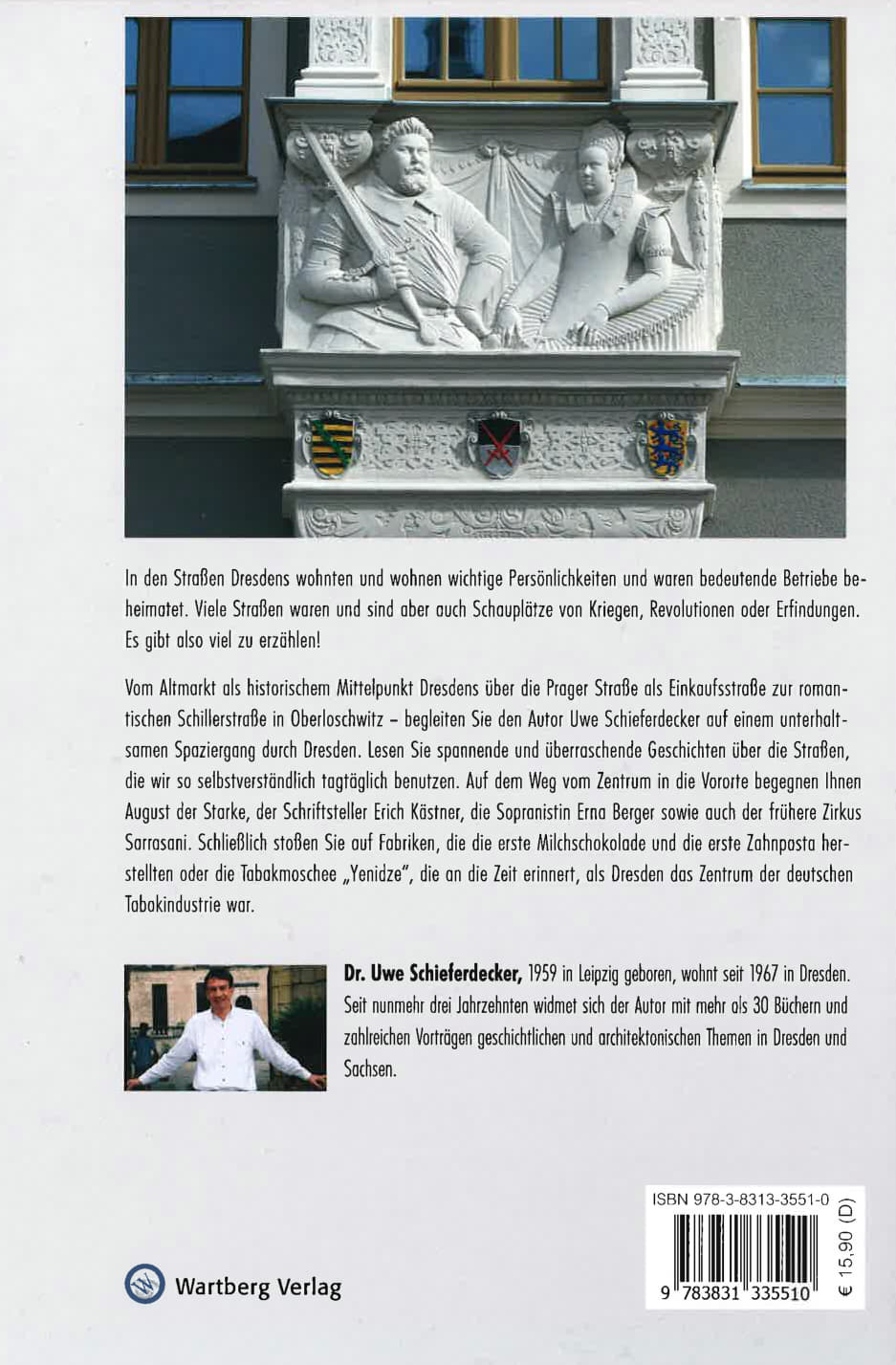 In den Straßen Dresdens wohnten und wohnen wichtige Persönlichkeiten und waren bedeutende Betriebe beheimatet. Viele Straßen waren und sind aber auch Schauplätze von Kriegen, Revolutionen oder Erfindungen. Es gibt also viel zu erzählen!Vom Altmarkt als historischem Mittelpunkt Dresdens über die Prager Straße als Einkaufsstraße zur romantischen Schillerstraße in Oberloschwitz - begleiten Sie den Autor Uwe Schieferdecker auf einem unterhaltsamen Spaziergang durch Dresden. Lesen Sie spannende und überraschende Geschichten über die Straßen, die wir so selbstverständlich tagtäglich benutzen. Auf dem Weg vom Zentrum in die Vororte begegnen Ihnen August der Starke, der Schriftsteller Erich Kästner, die Sopranistin Erna Berger sowie auch der frühere Zirkus Sarrasani. Schließlich stoßen Sie auf Fabriken, die die erste Milchschokolade und die erste Zahnpasta herstellten oder die Tabakmoschee "Yenidze", die an die Zeit erinnert, als Dresden das Zentrum der deutschen Tabakindustrie war.