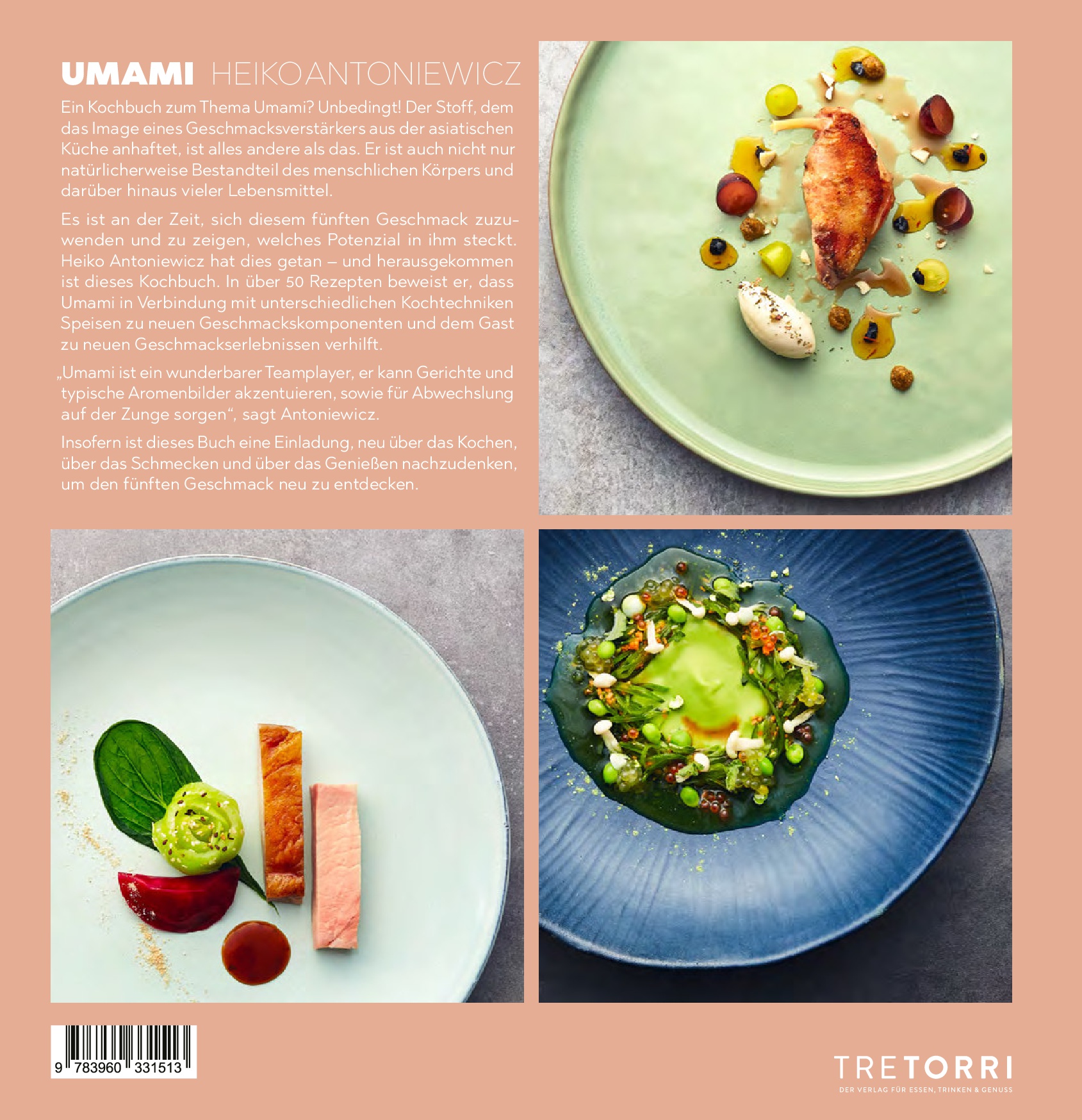 Heiko Antoniewicz hat sich in der überarbeiteten Neuauflage mit innovativ entwickelten Gerichten ganz diesem höchst aktuellen Thema verschrieben. In etwa 50 Rezepten zeigt er vielfältige Kombinationsmöglichkeiten bekannter Lebensmittel, die zur Anregung der Umamirezeptoren dienen. Darunter befinden sich Kompositionen wie Maispoularde mit Sardellenpaste und Haselnuss oder Schweinebauch mit Lakritze und Frühlingszwiebel. Wie für ein Antoniewicz-Buch selbstverständlich, wird dem Thema nicht nur in Rezepten der gebührende Raum gelassen, sondern Umami auch für jeden Leser verständlich von wissenschaftlicher Seite aus beleuchtet.