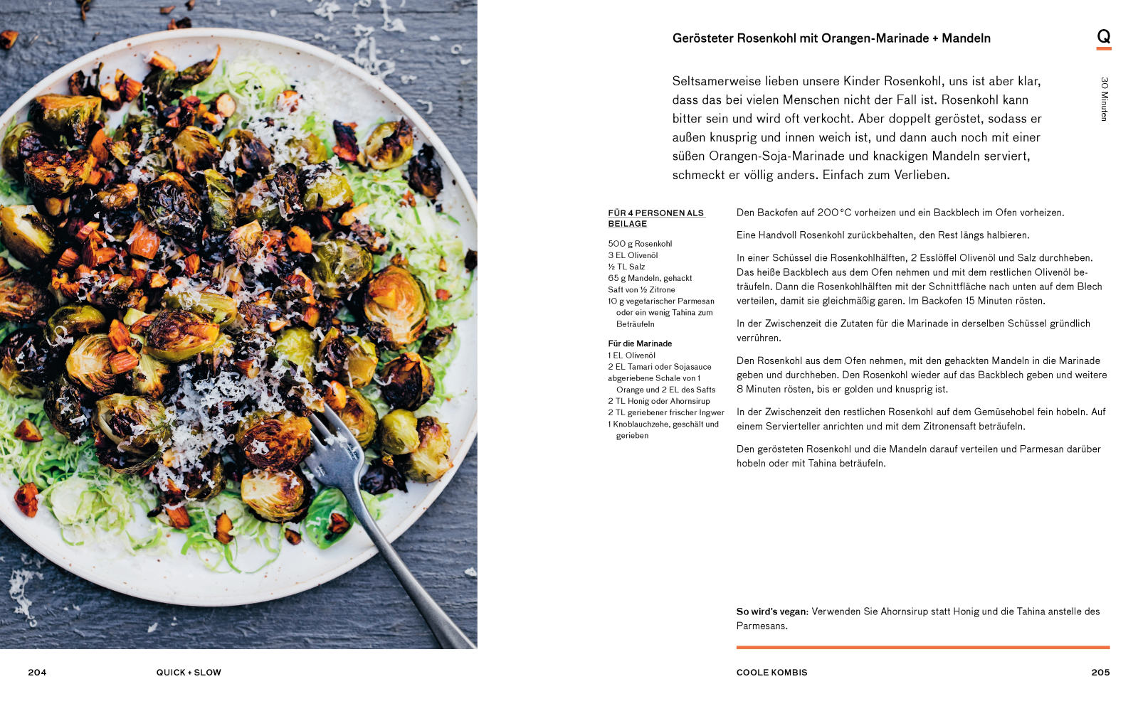 - Slow - Ruhige Momente: Kürbis-Quiche mit Zwiebeln + Grünkohl / Kimchi-Quinoa-Burger / Langsam gegartes Gemüse-Ragù / Griechischer Kartoffel-Eintopf / Koreanische Salat-Wraps mit Pilz-Steaks