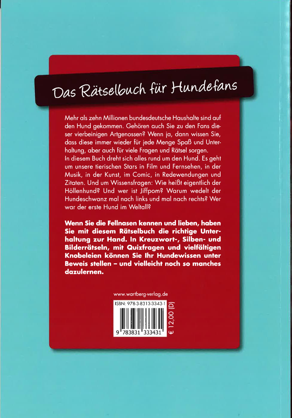 Weit mehr als zehn Millionen bundesdeutsche Haushalte sind auf den Hund gekommen. Gehören auch Sie zu den Fans dieser vierbeinigen Artgenossen? Wenn ja, dann wissen Sie, dass diese immer wieder für jede Menge Spaß und Unterhaltung, aber auch für viele Fragen und Rätsel sorgen. In Kreuzwort-, Silben- und Bilderrätseln, mit Quizfragen und vielfältigen Knobeleien dreht sich hier alles rund um den Hund. Es geht um unsere tierischen Stars in Film und Fernsehen, in der Musik, der Kunst, im Comic, in Redewendungen und Zitaten. Und um Wissensfragen: Wie heißt eigentlich der Höllenhund? Und wer ist Jiffpom? Warum wedelt der Hundeschwanz mal nach links und mal nach rechts? Wer war der erste Hund im Weltall? In diesem Buch können Sie Ihr Hundewissen unter Beweis stellen.